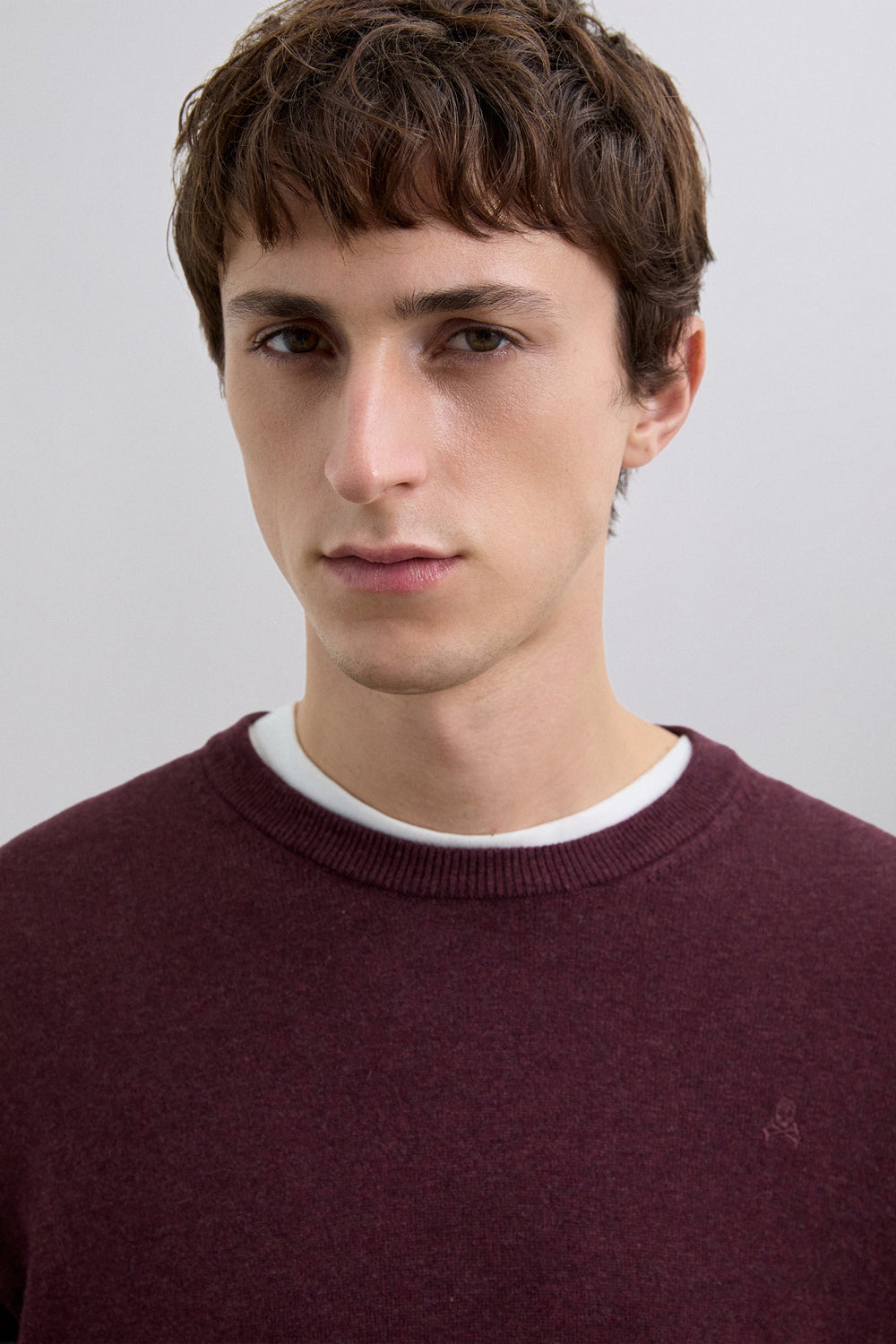 Sweater confecionada em algodão. Manga comprida. Decote redondo. Pormenor de skull bordada no tom no peito. Acabamentos em nervuras.