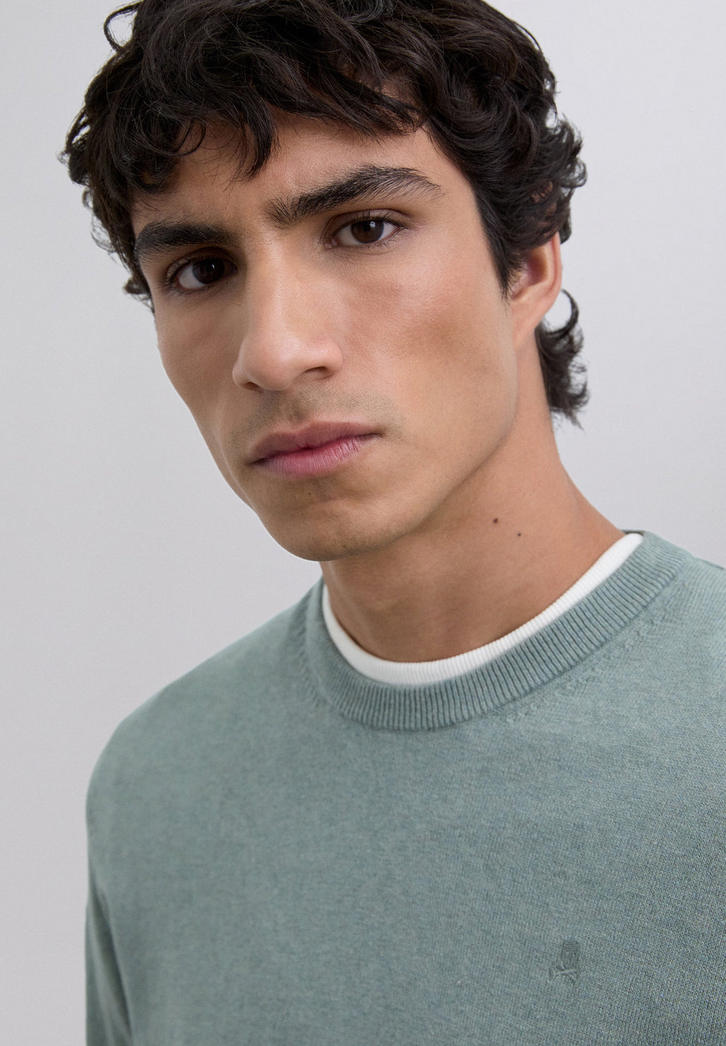 Sweater confecionada em algodão. Manga comprida. Decote redondo. Pormenor de skull bordada no tom no peito. Acabamentos em nervuras.