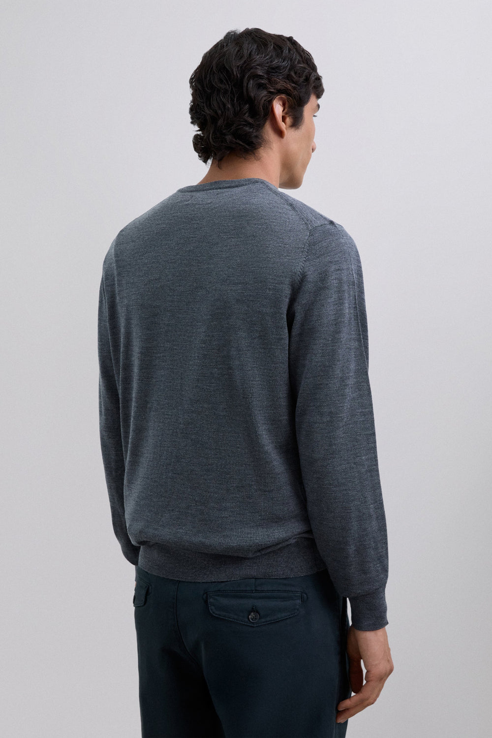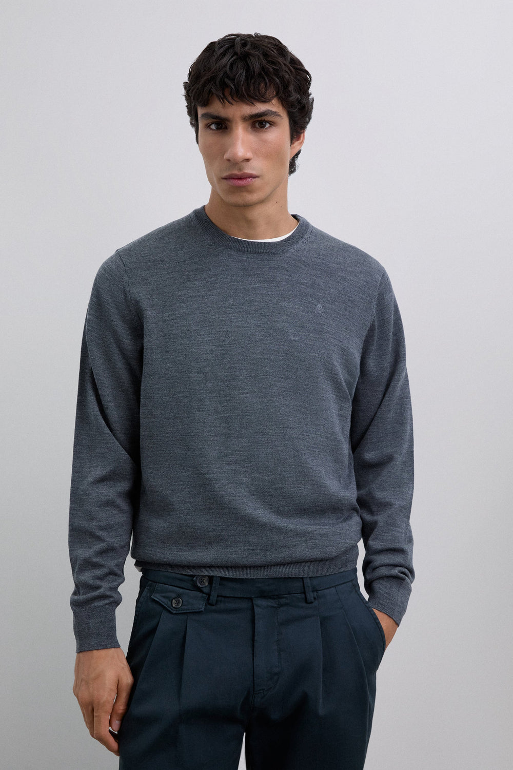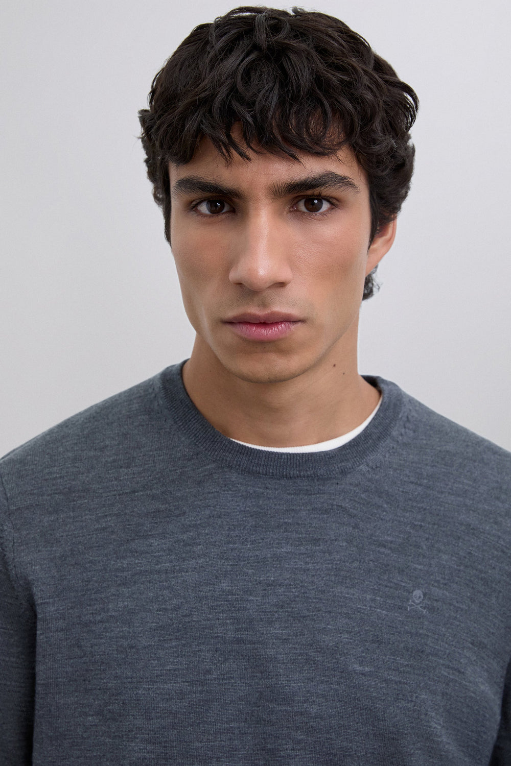 Sweater confecionada em 100% lã. Regular fit. Decote redondo. Manga comprida. Pormenor de logótipo bordado no tom no peito. Acabamentos em nervuras.