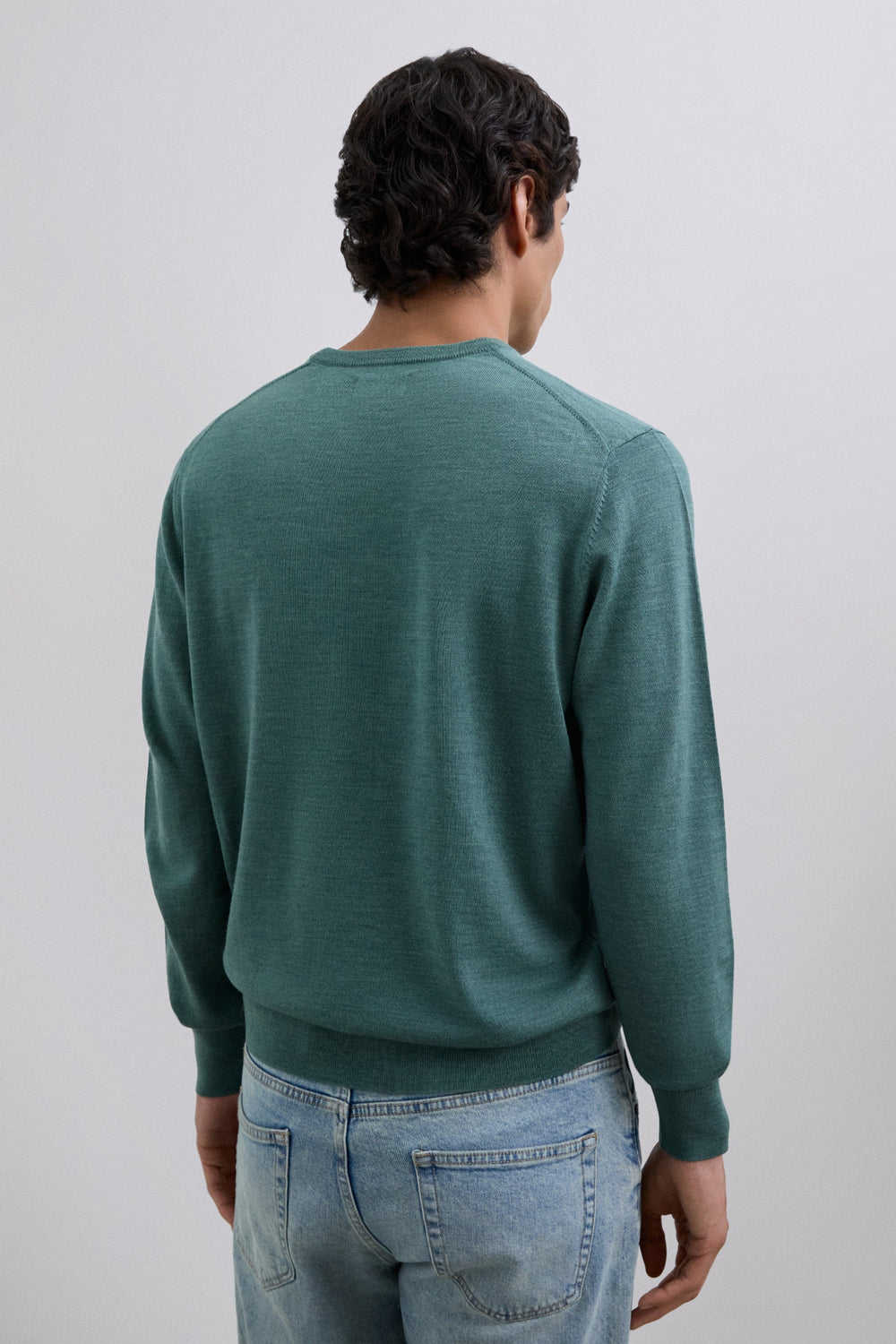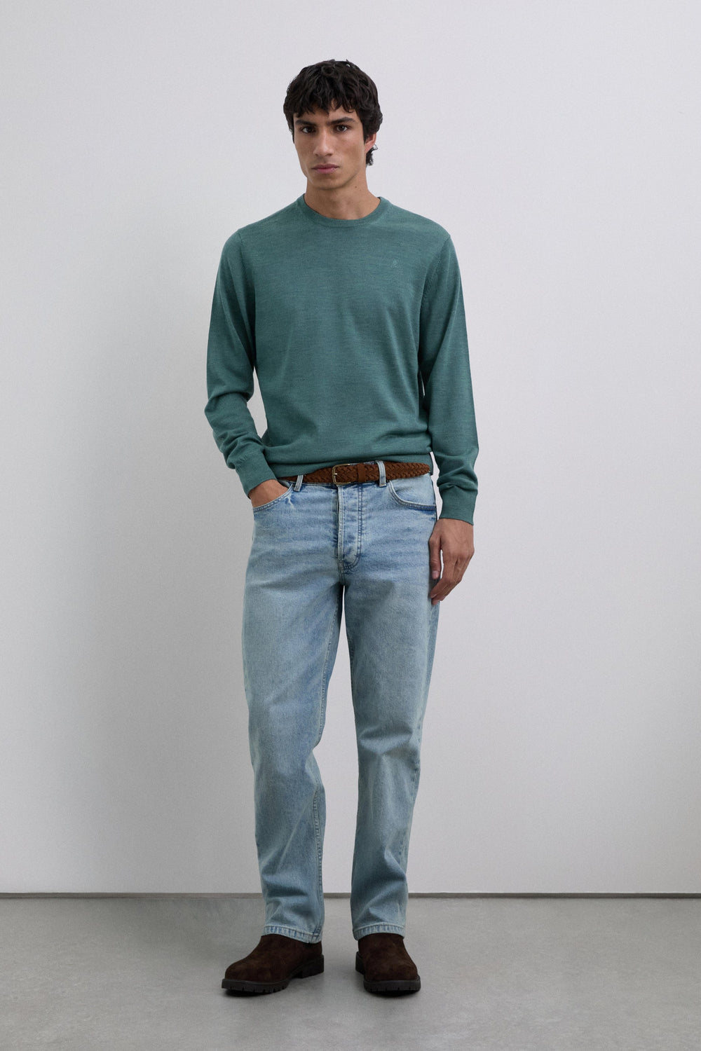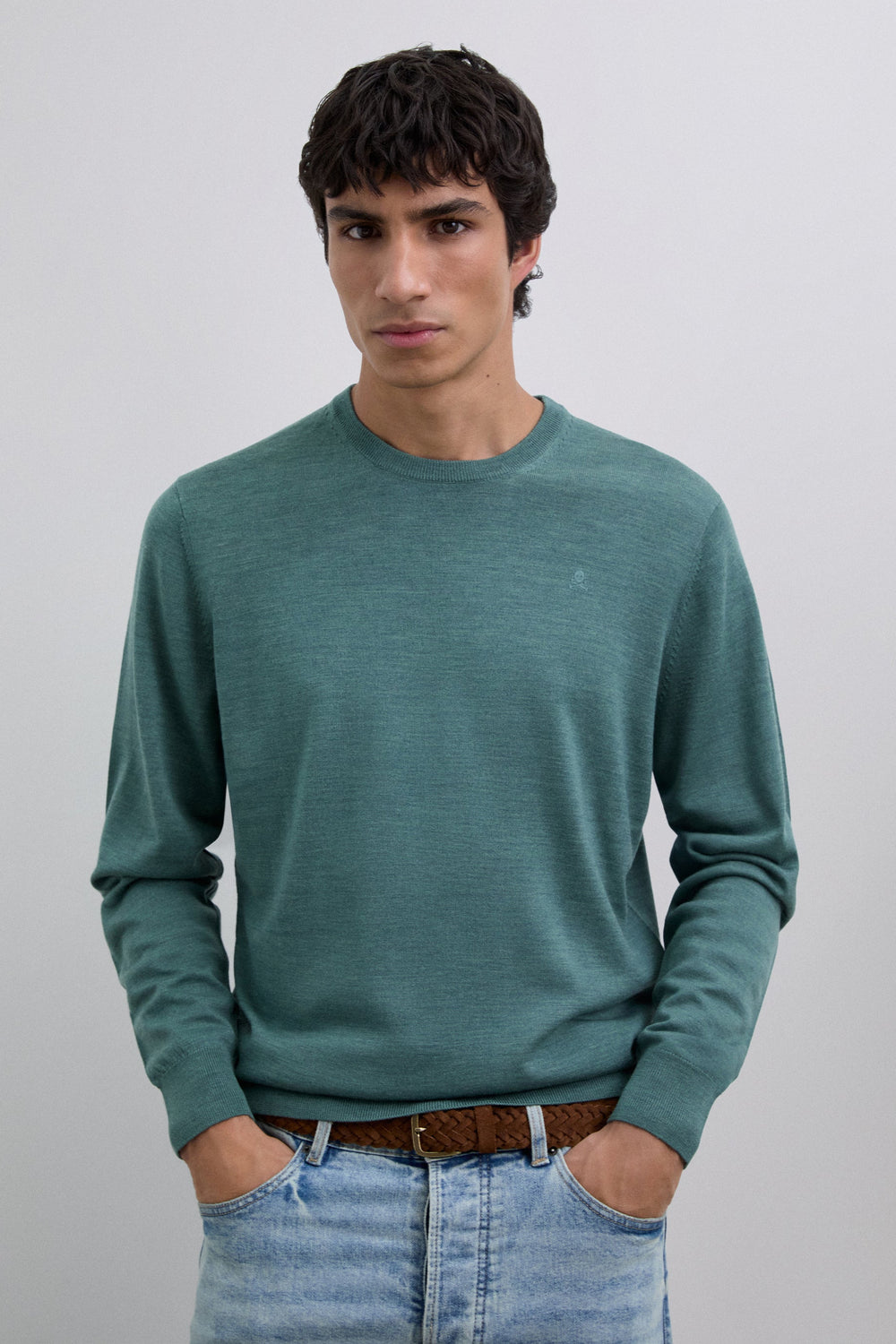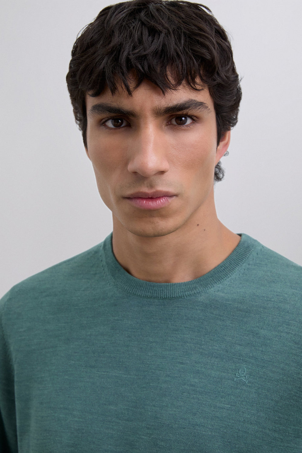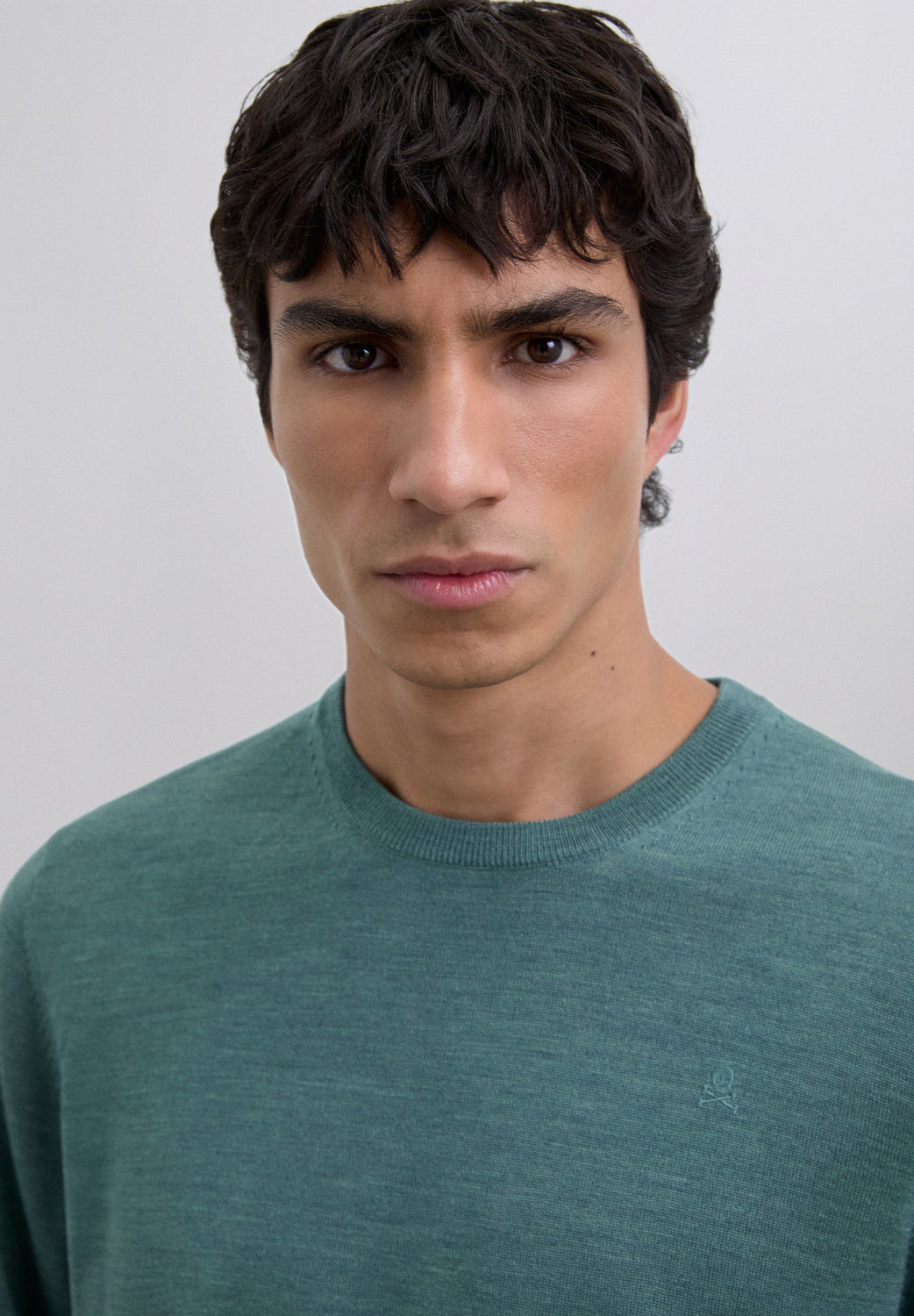 Sweater confecionada em 100% lã. Regular fit. Decote redondo. Manga comprida. Pormenor de logótipo bordado no tom no peito. Acabamentos em nervuras.
