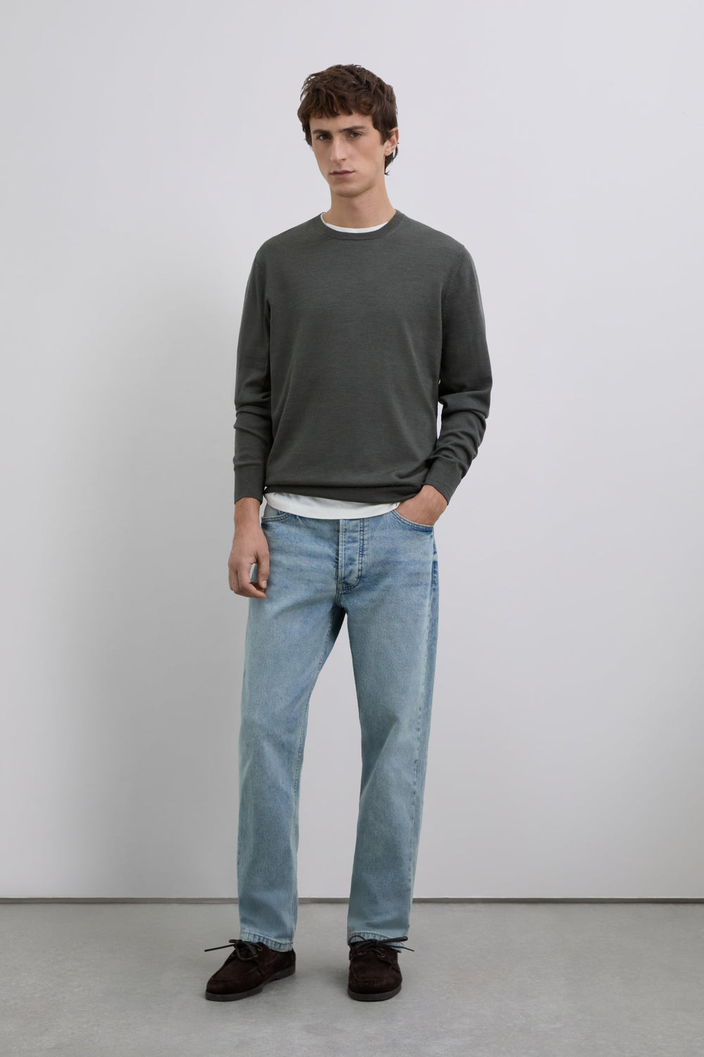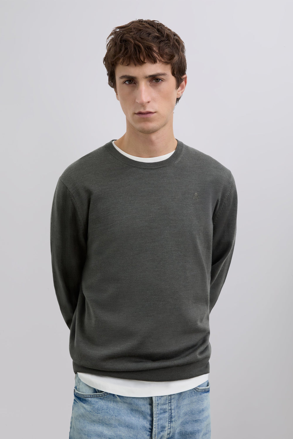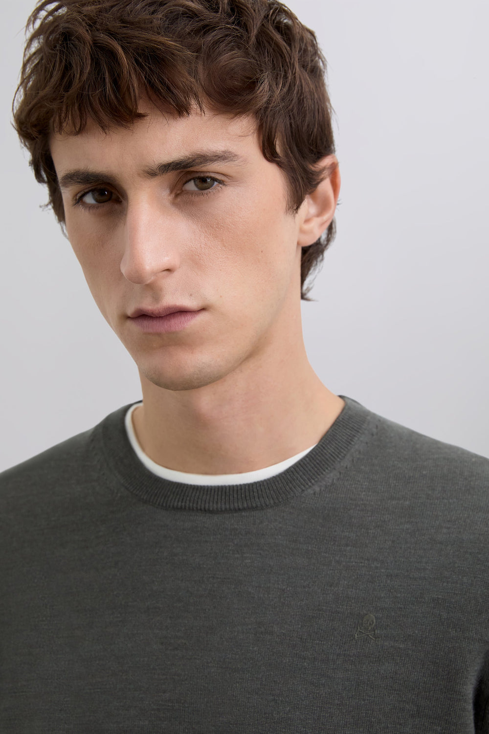Sweater confecionada em 100% lã. Regular fit. Decote redondo. Manga comprida. Pormenor de logótipo bordado no tom no peito. Acabamentos em nervuras.