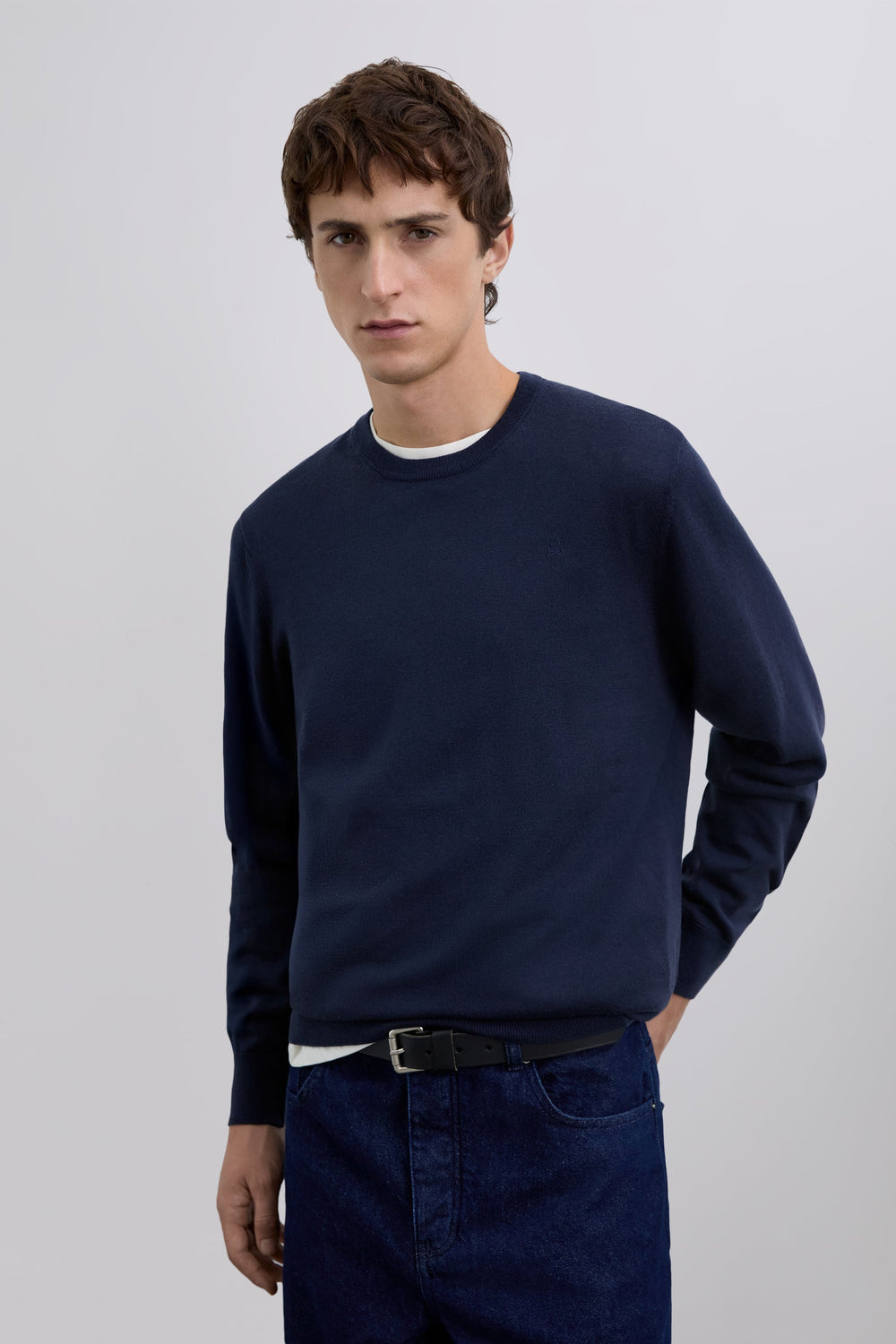 Sweater confecionada em 100% lã. Regular fit. Decote redondo. Manga comprida. Pormenor de logótipo bordado no tom no peito. Acabamentos em nervuras.