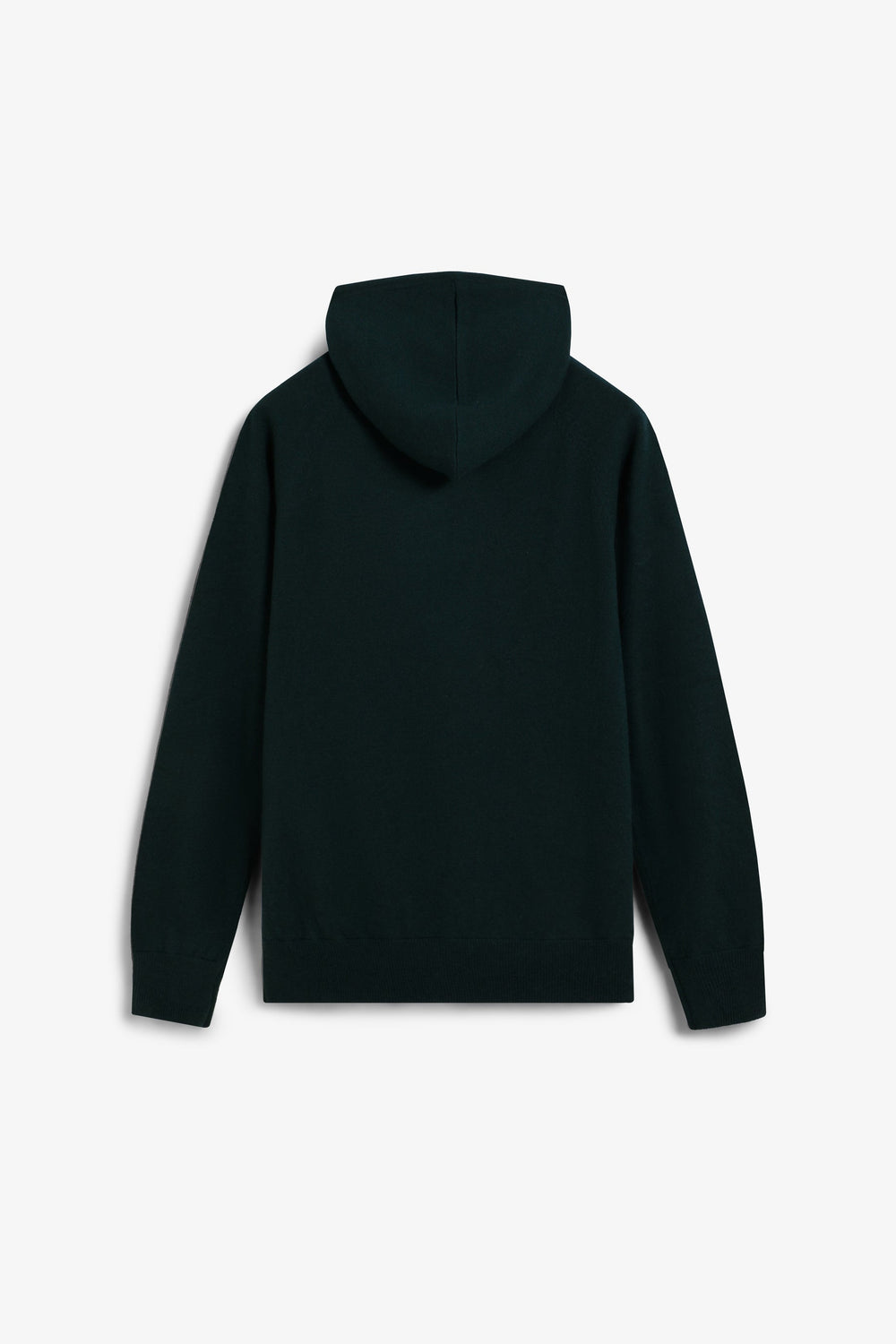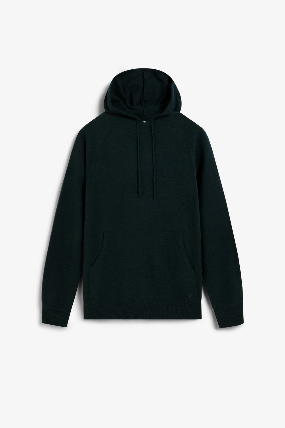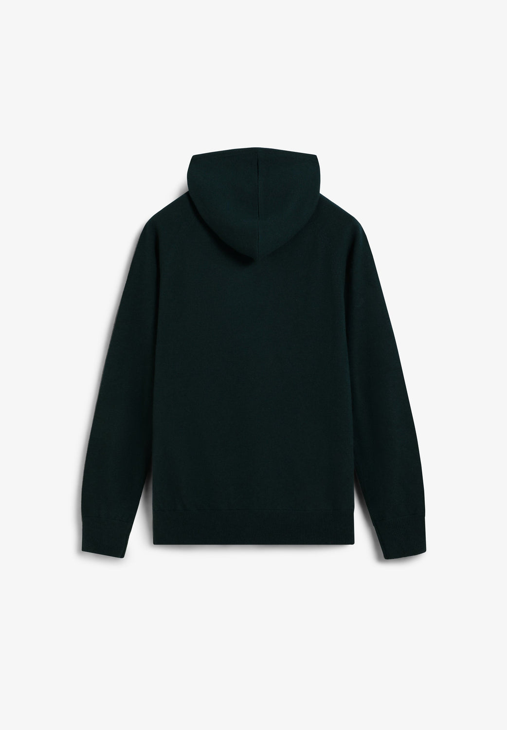 Camisola de malha confecionada em 100% lã. Capuz ajustável com cordões. Manga comprida. Bolso frontal estilo canguru. Mangas e cintura com acabamentos em nervuras.