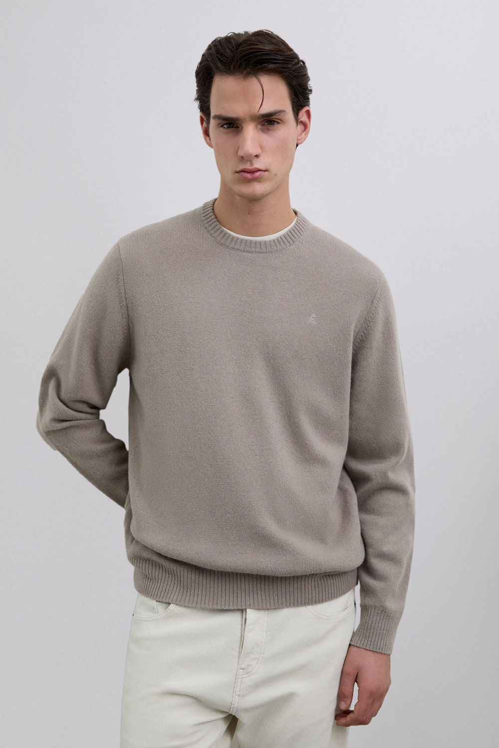 Camisola confecionada em lã. Regular fit. Decote redondo. Manga comprida. Pormenor de etiqueta com logótipo. Acabamentos em nervuras.