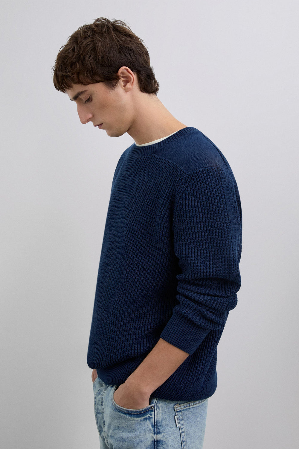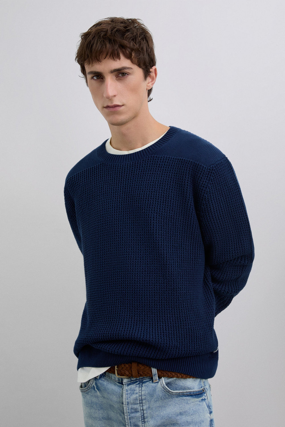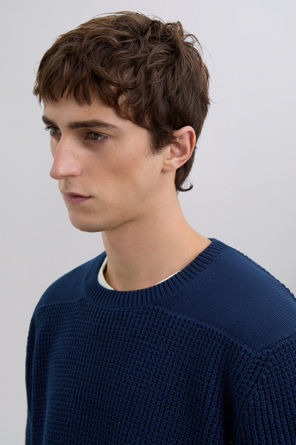 Sweater estruturada confecionada em 100% algodão BCI. Regular fit. Decote redondo. Manga comprida. Pormenor de etiqueta com logótipo no interior.