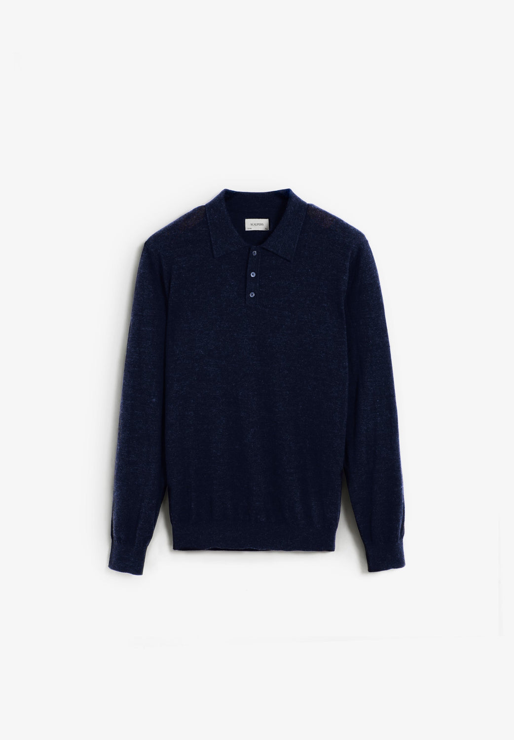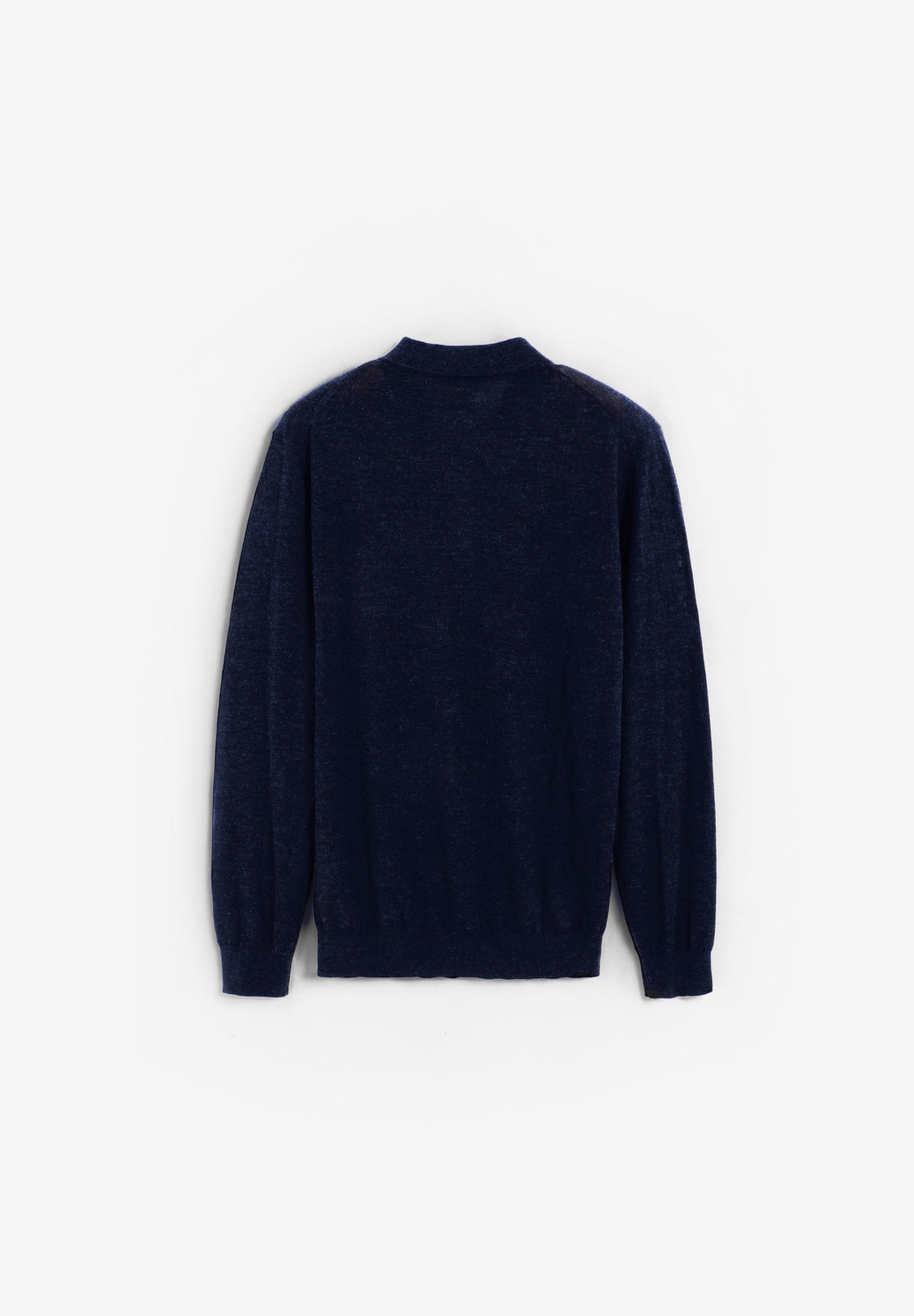 Sweater confecionada em 100% lã. Manga comprida. Gola de camisa polo. Fecho com botões.