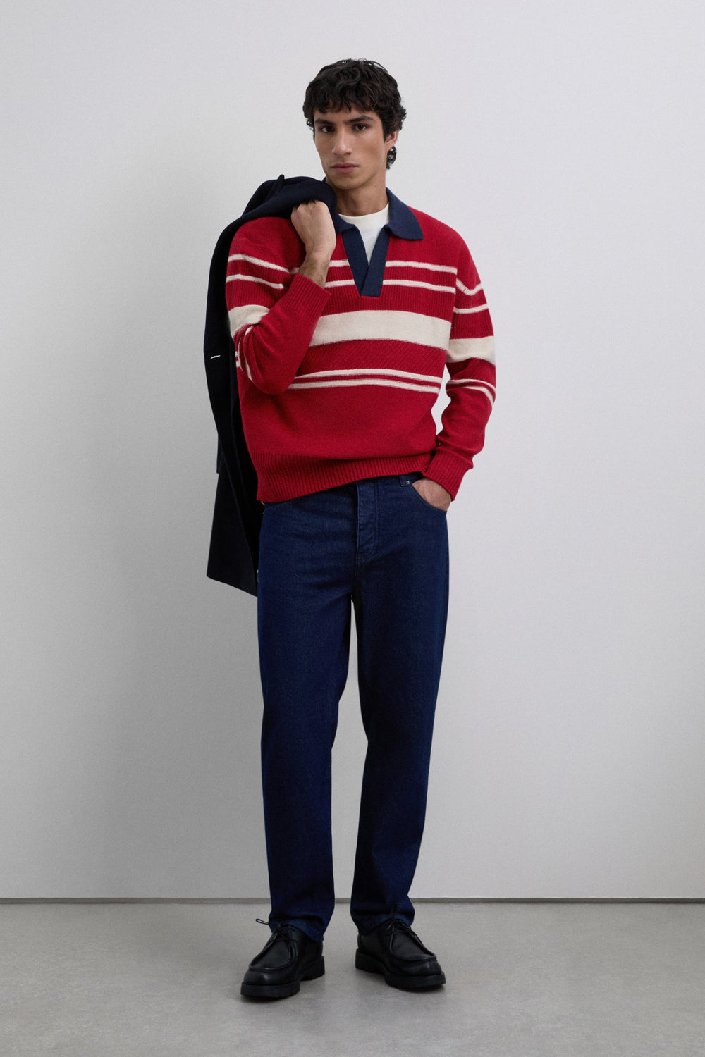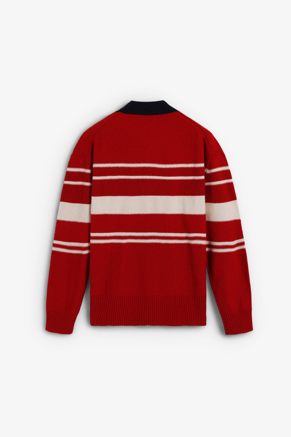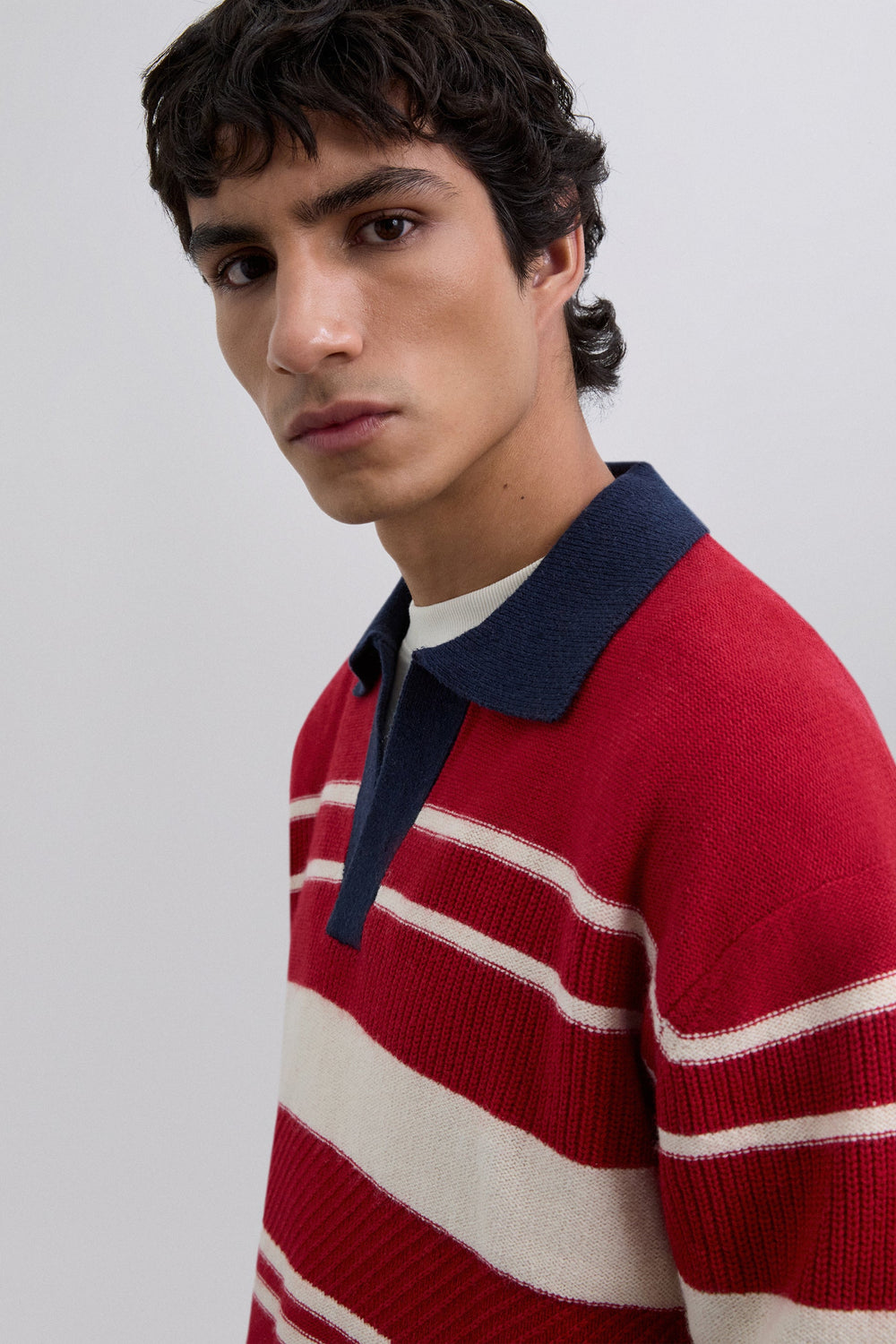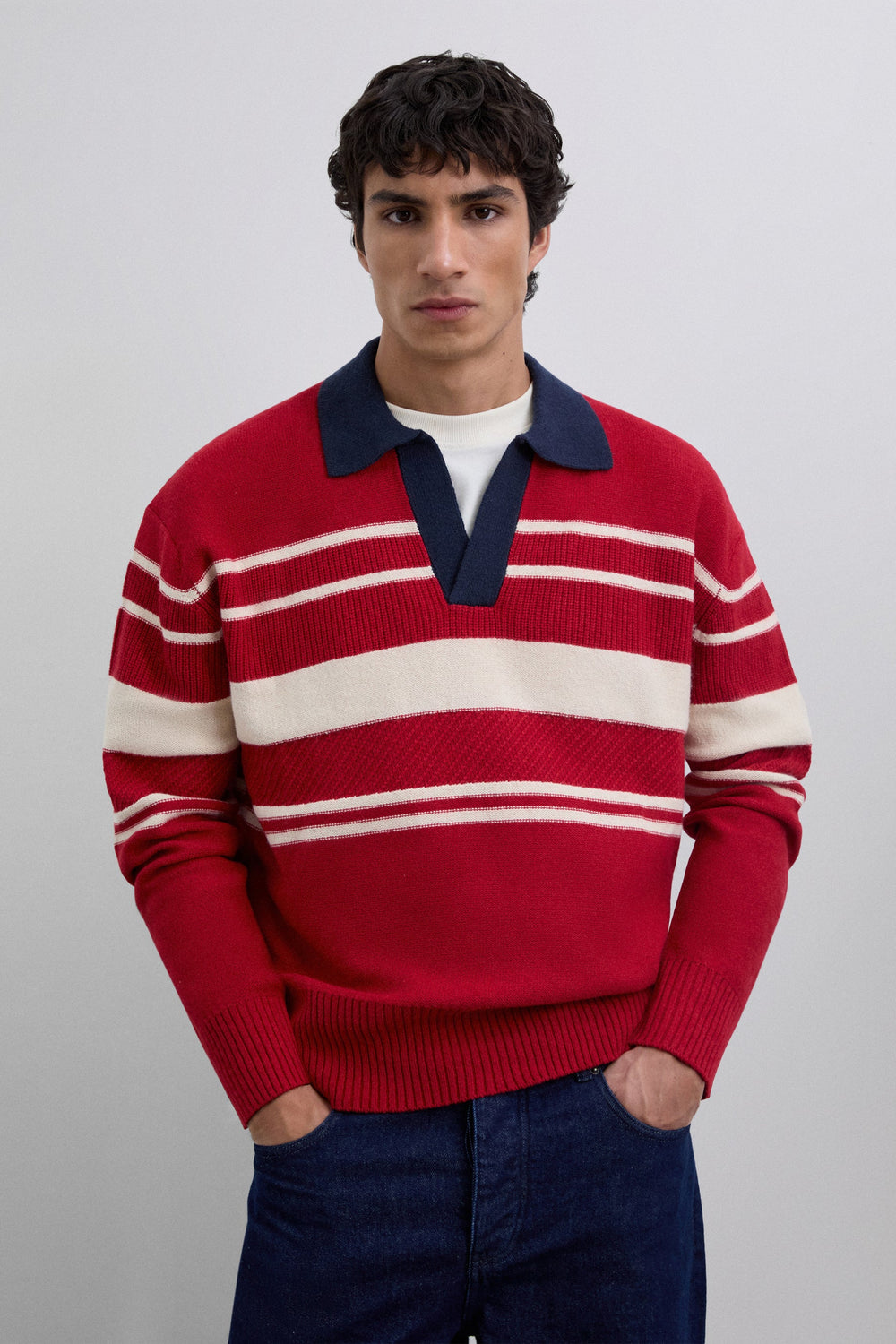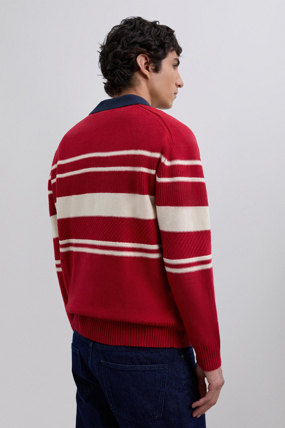 SWEATER DE LÃ TIPO CAMISA POLO ÀS RISCAS