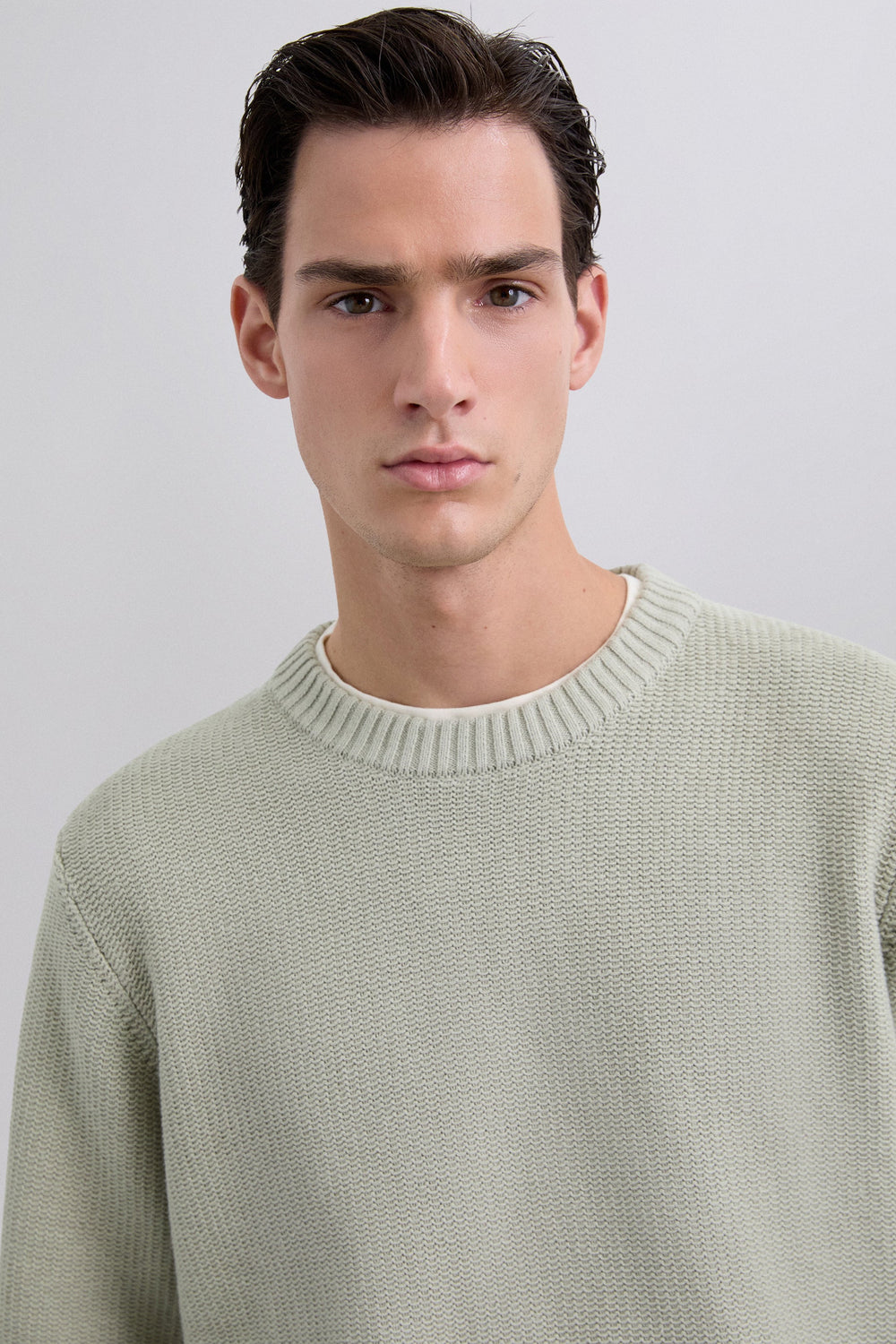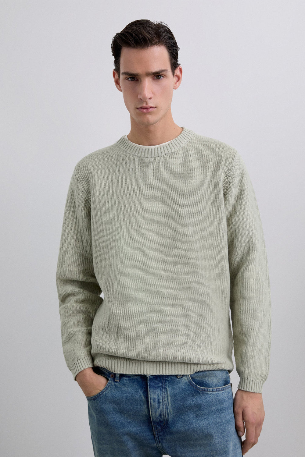 Sweater confecionada em 100% algodão BCI. Decote redondo. Manga comprida. Corte regular. Acabamentos em nervuras.