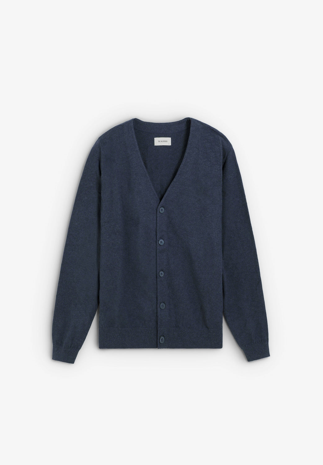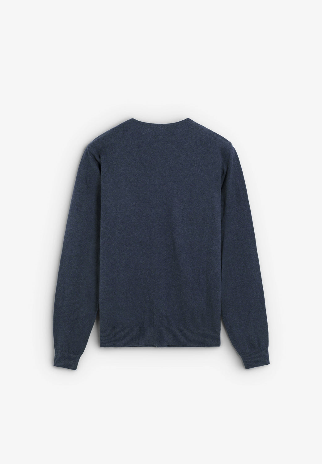 Cardigan confecionado em algodão BCI. Decote em V. Fecho com botões. Manga comprida. Pormenor de skull bordada no tom no peito. Cintura e punhos acabados em nervuras.