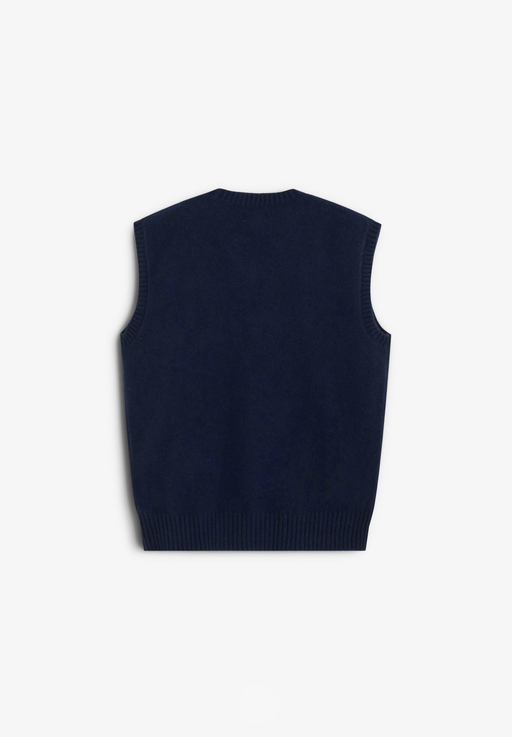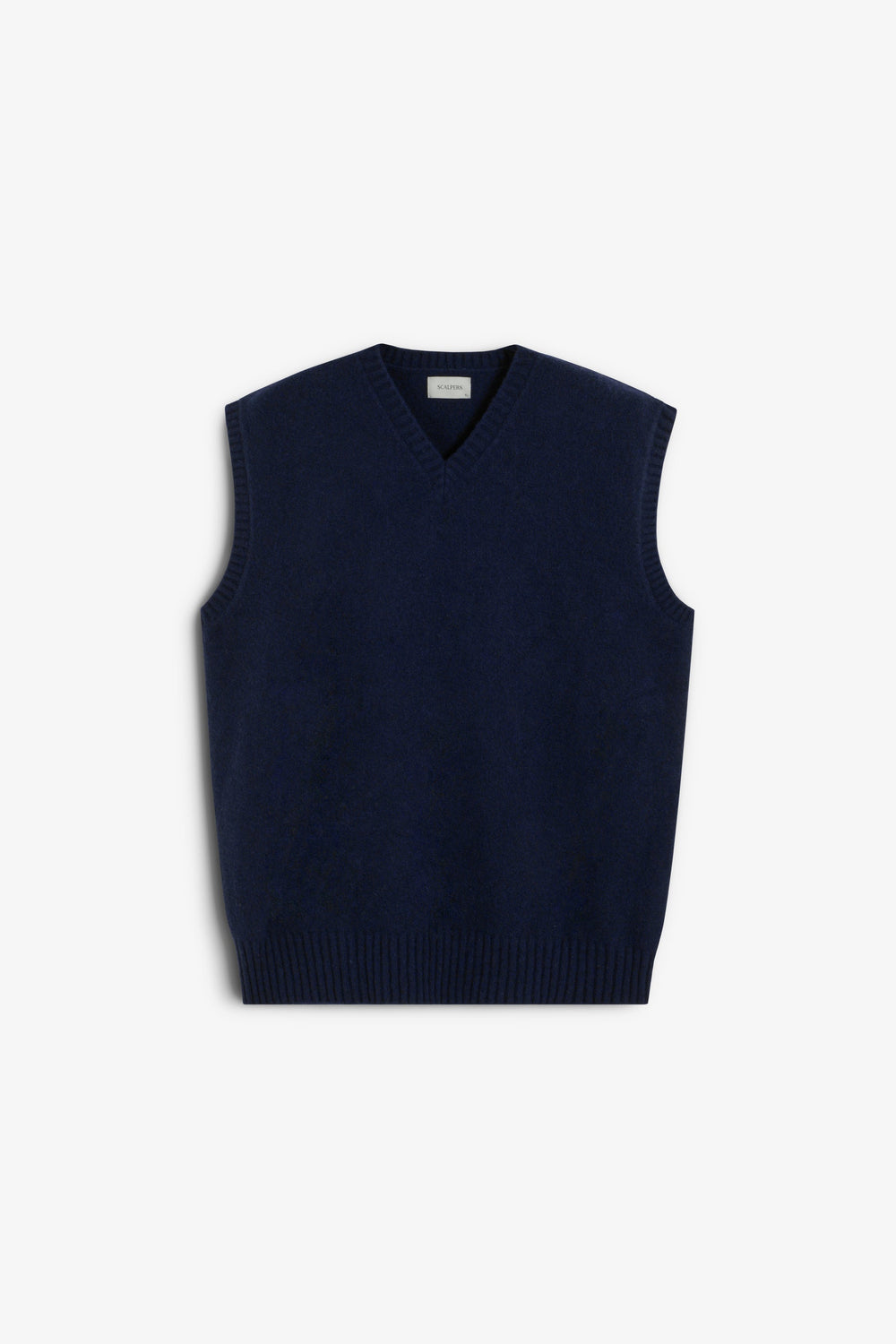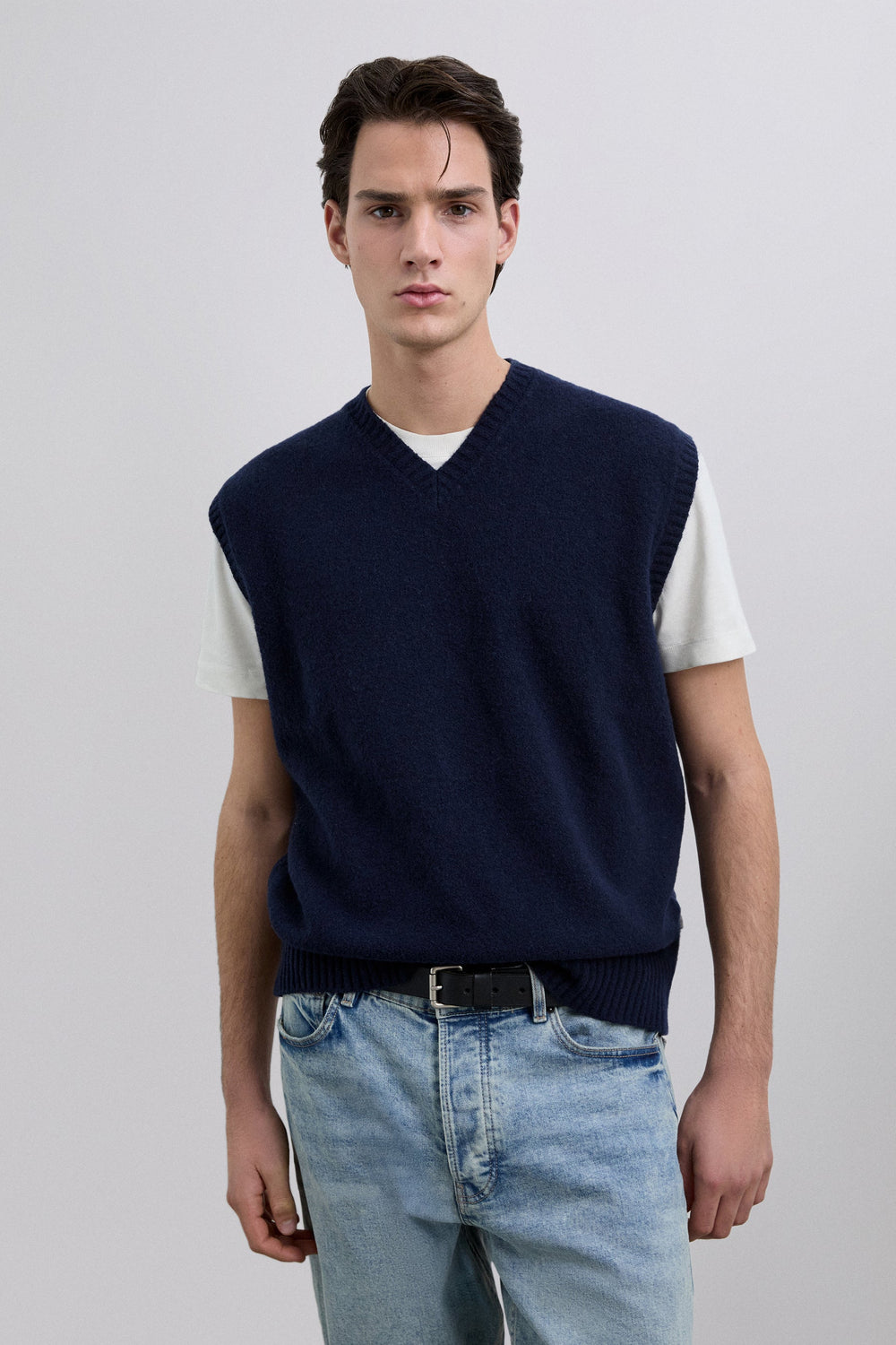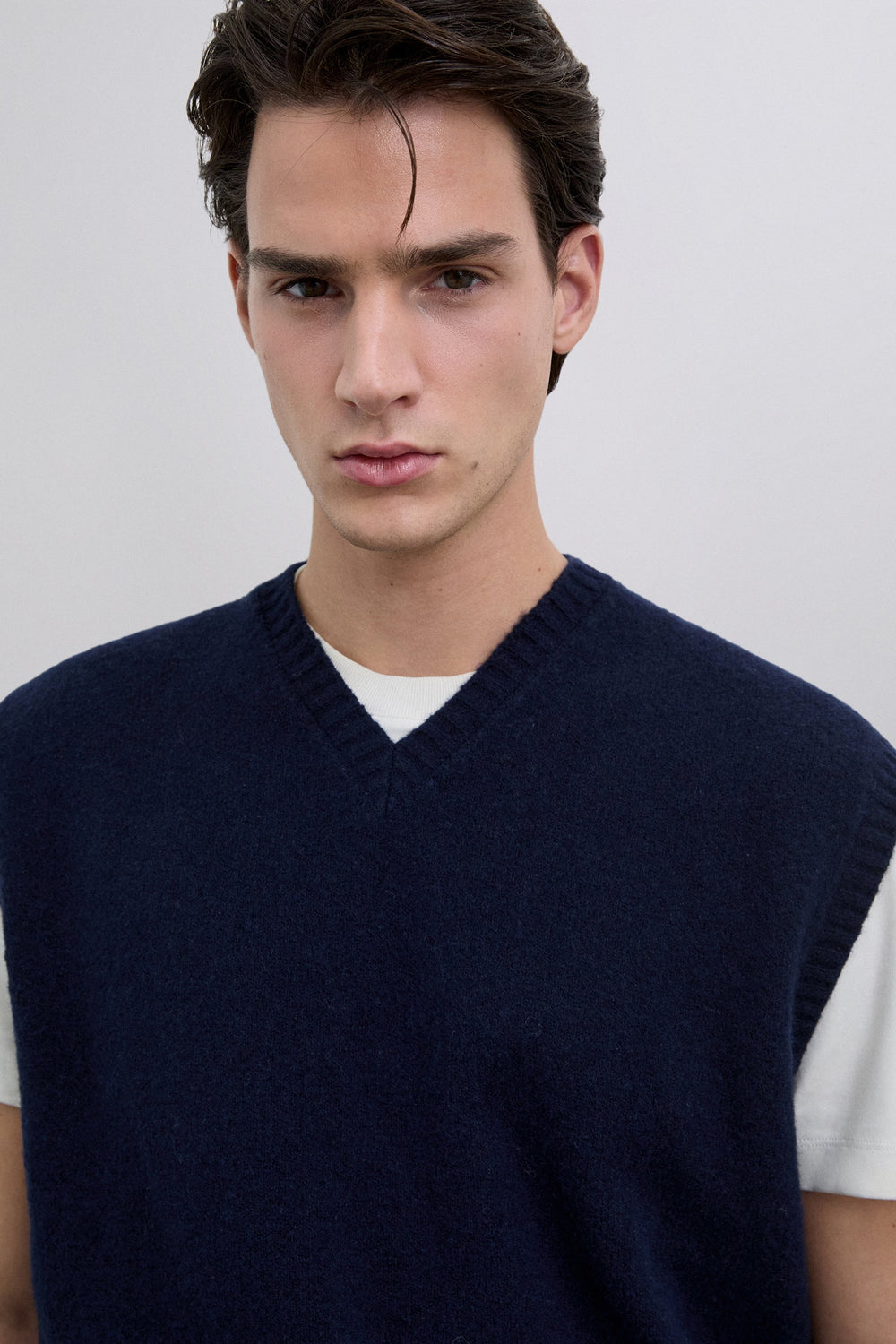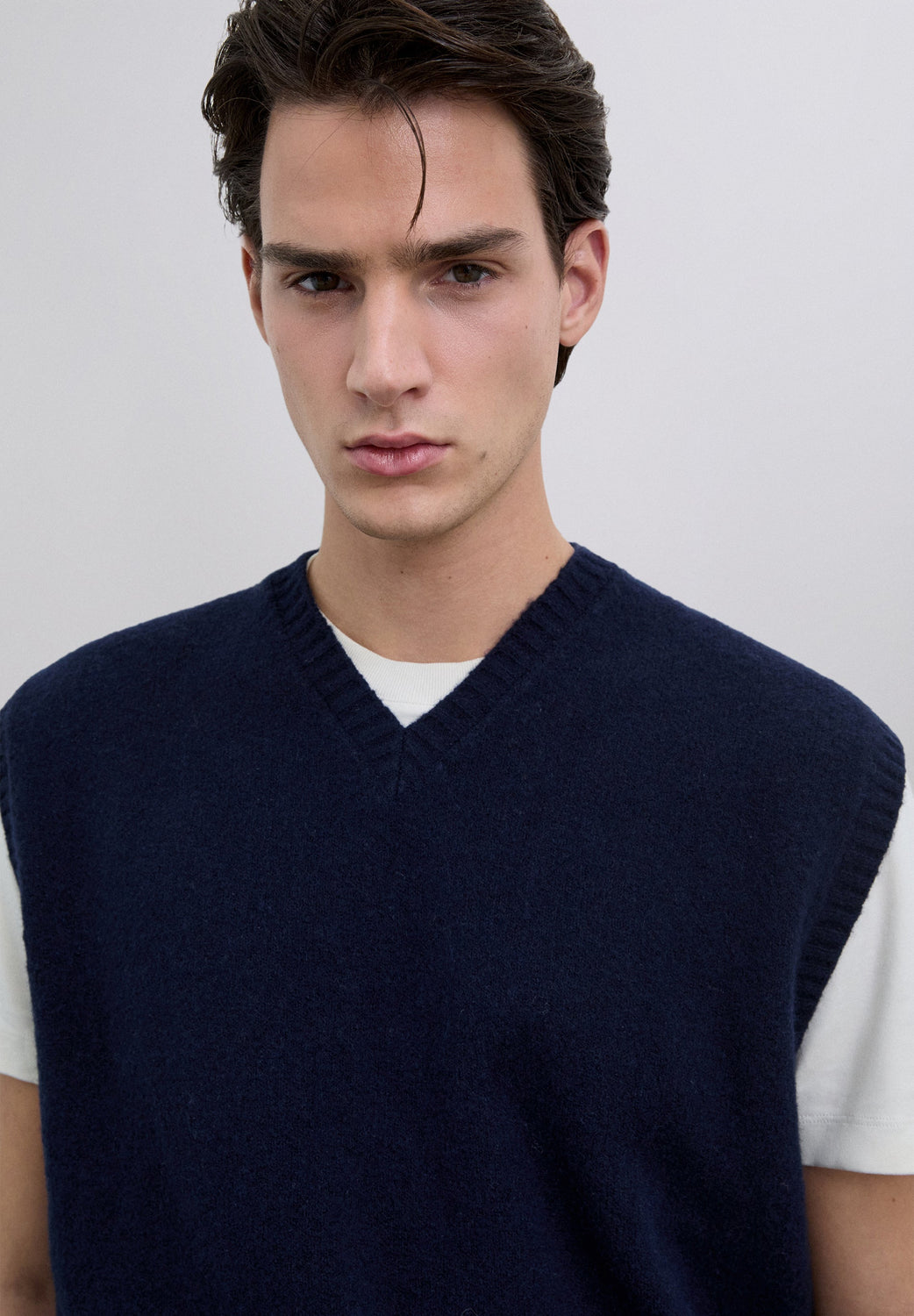 Colete confecionado em mistura de lã. Decote em V. Corte regular.