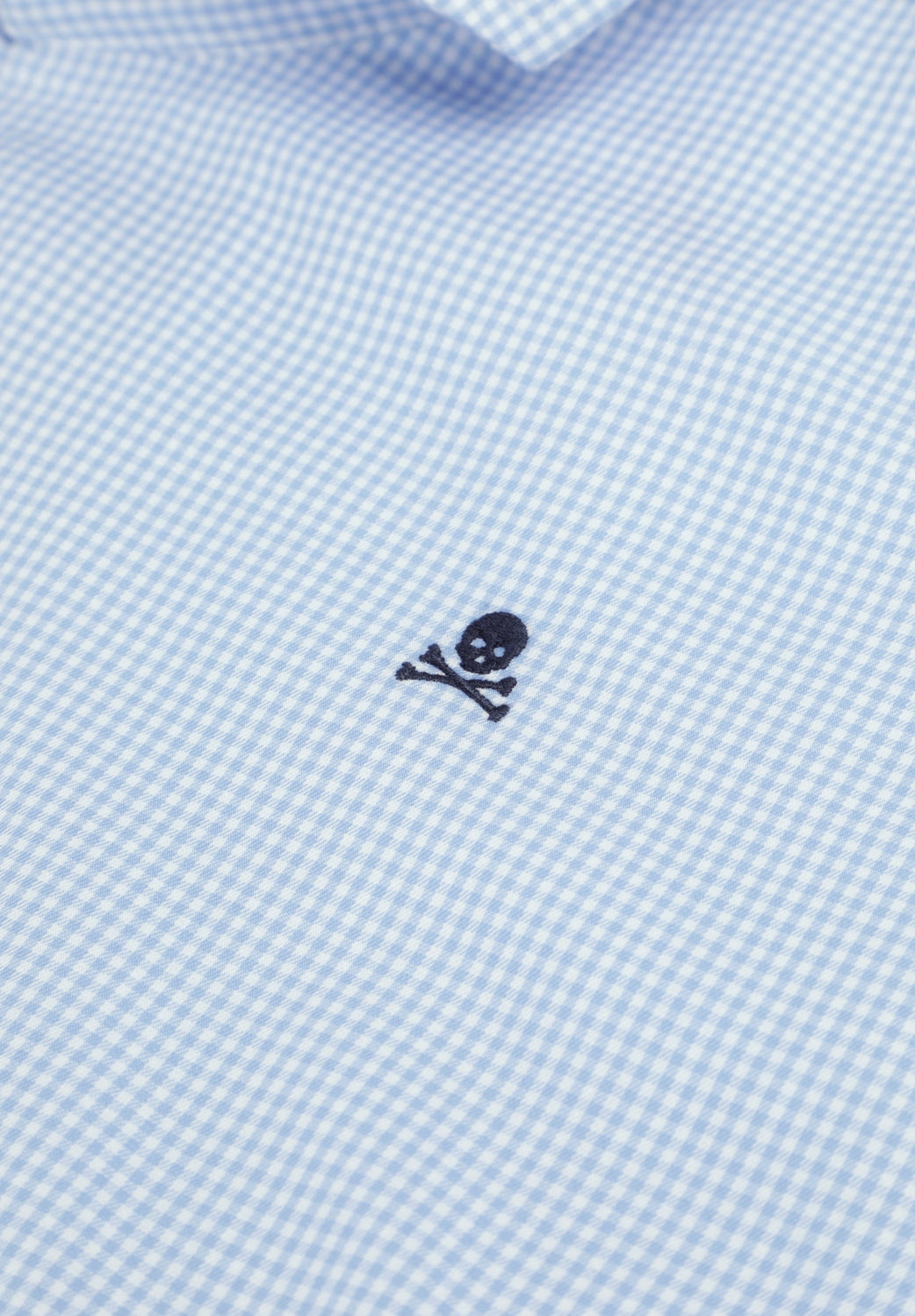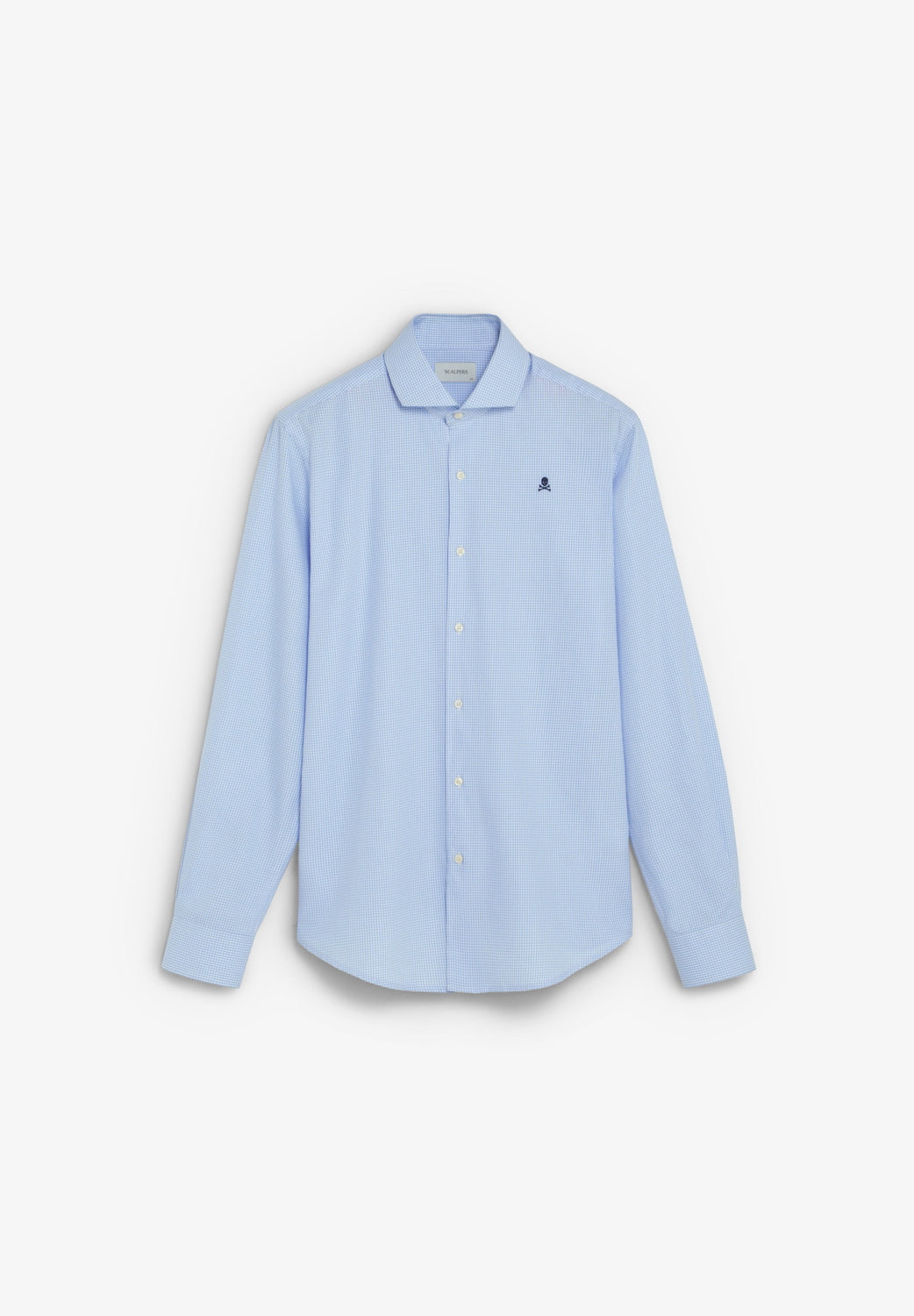 Camisa confecionada em tecido 100% algodão BCI. Corte regular. Manga comprida. Fecho à frente e punhos abotoados. Skull em contraste no peito.
