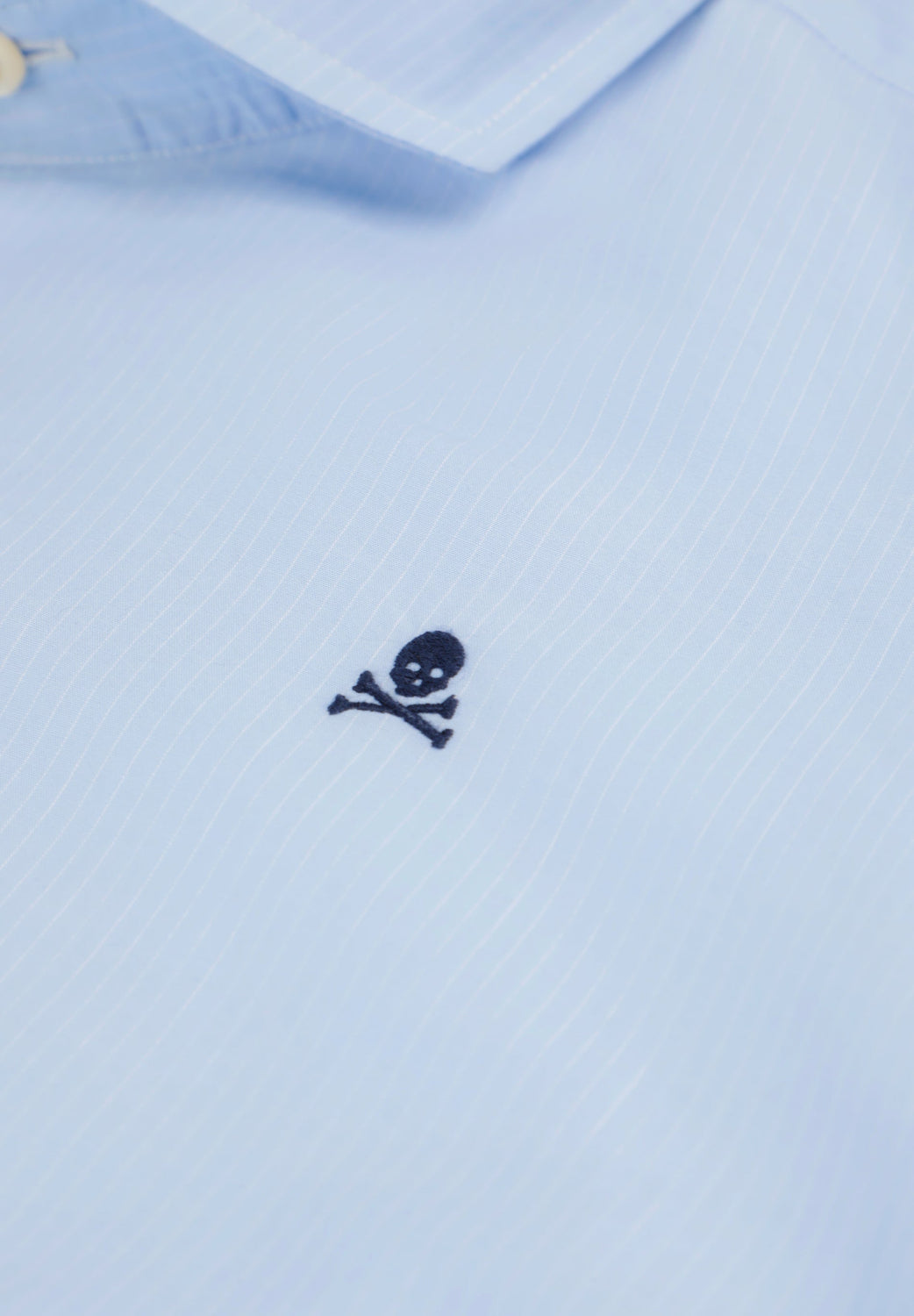 Camisa confecionada em tecido 100% algodão BCI. Corte regular. Manga comprida. Fecho à frente e punhos abotoados. Skull em contraste no peito.