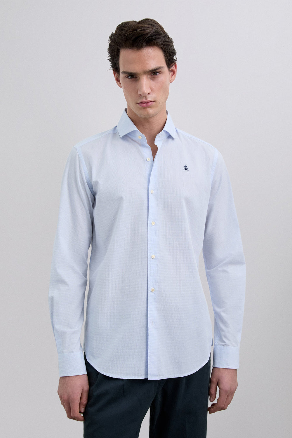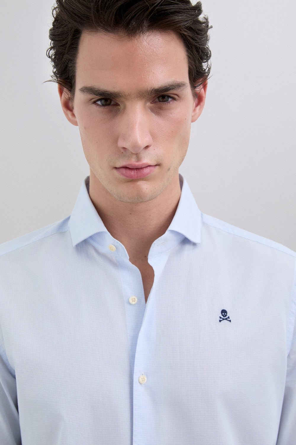 Camisa confecionada em tecido 100% algodão BCI. Regular fit. Manga comprida. Fecho frontal e no punho com abotoadura. Pormenor de skull bordada em contraste no peito.