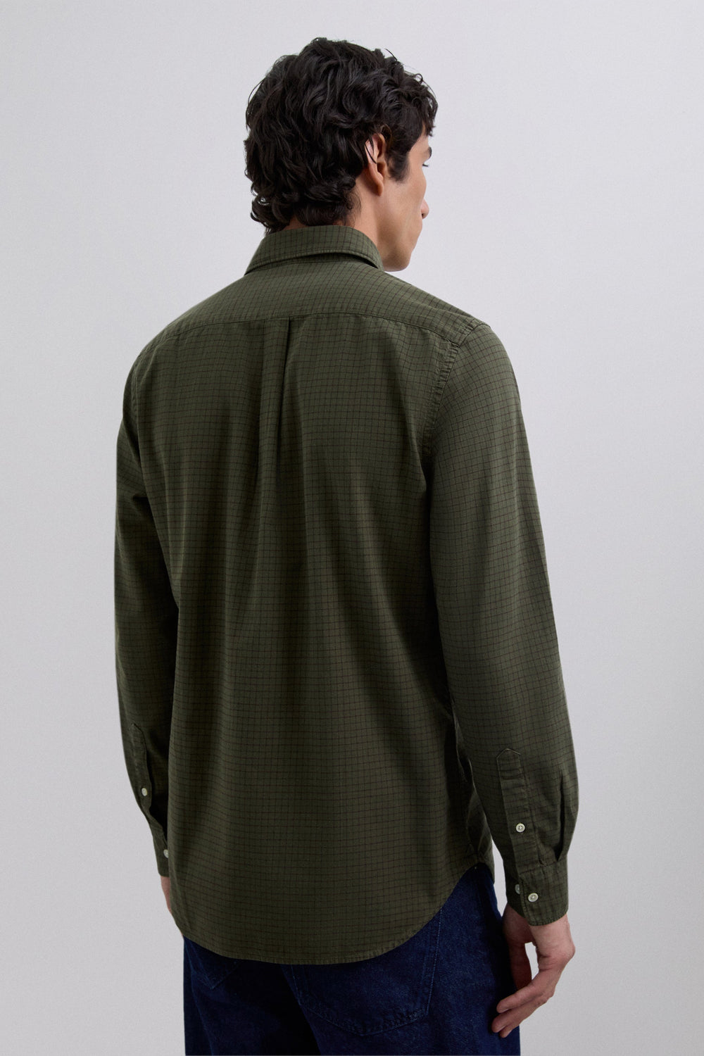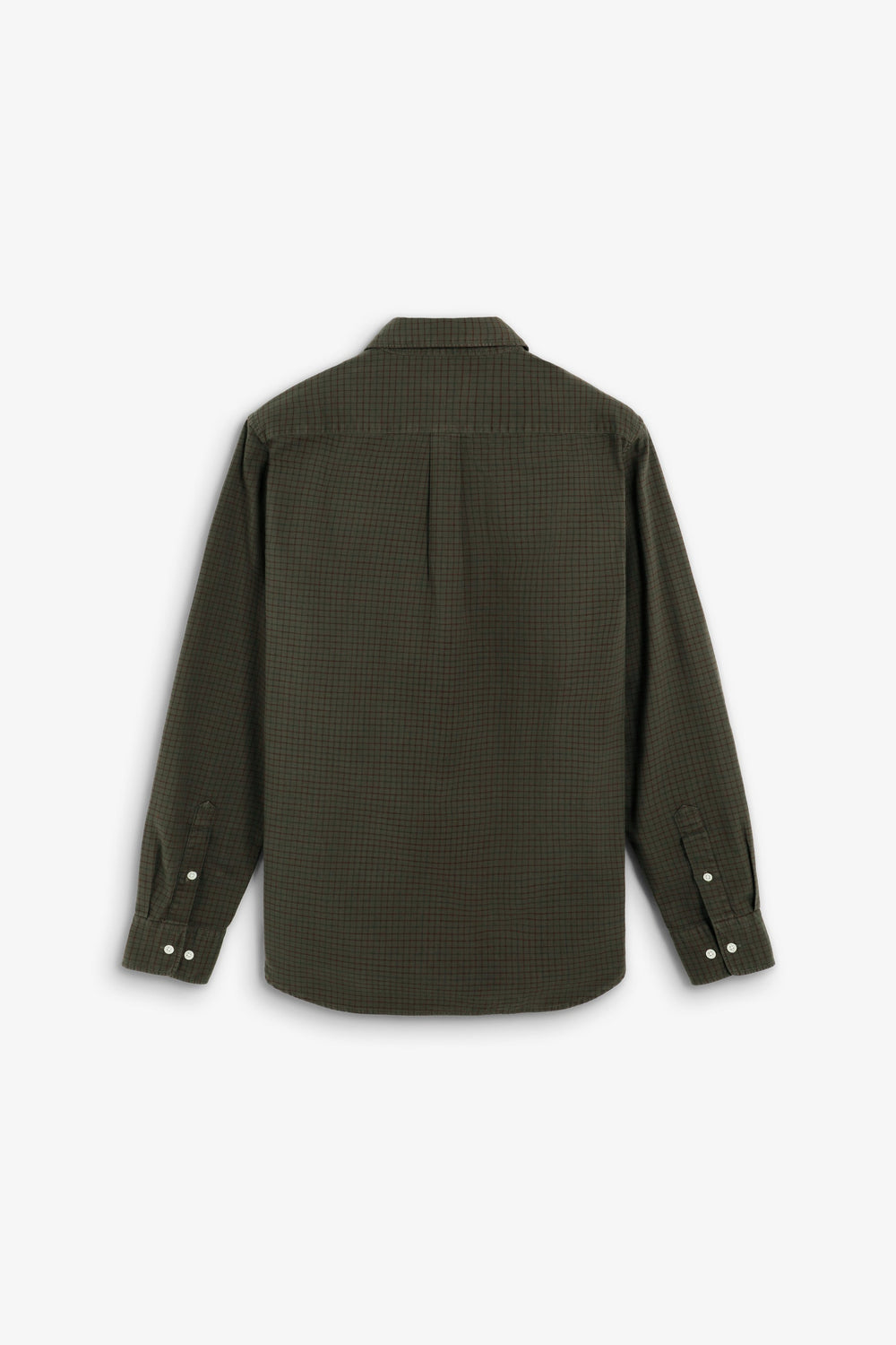 Camisa confecionada em tecido 100% algodão BCI. Padrão em xadrez. Manga comprida com botões no punho. Abotoadura à frente.
