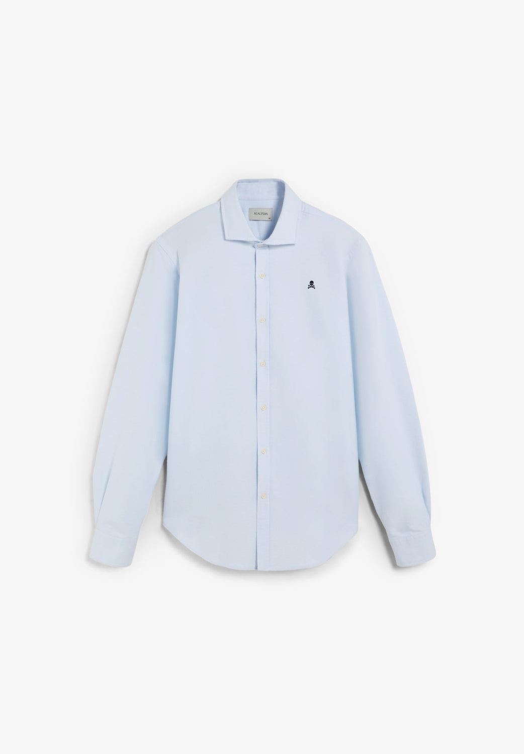 Camisa Oxford confecionada em 100% algodão BCI. Regular fit. Manga comprida. Fecho frontal e nos punhos com abotoadura. Pormenor de skull bordada em contraste no peito.