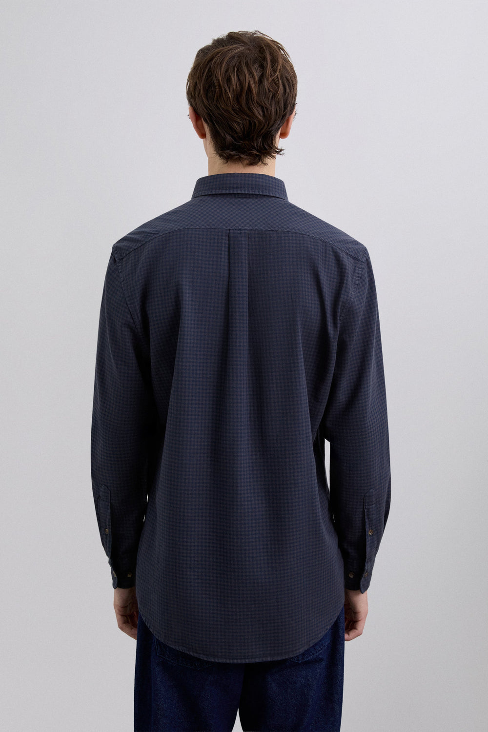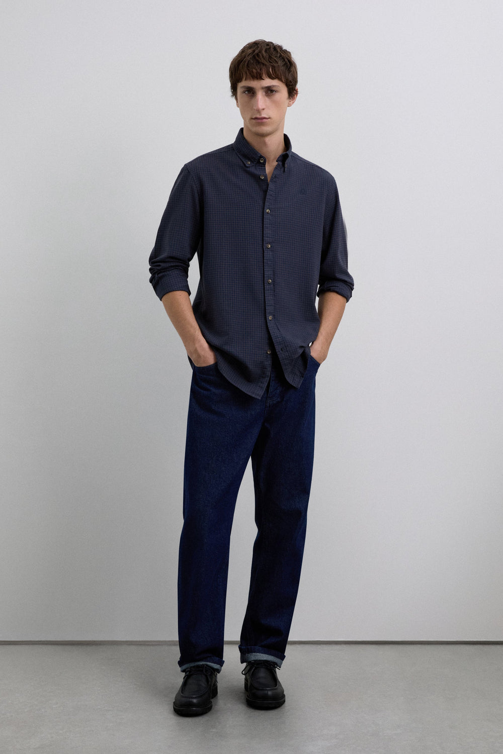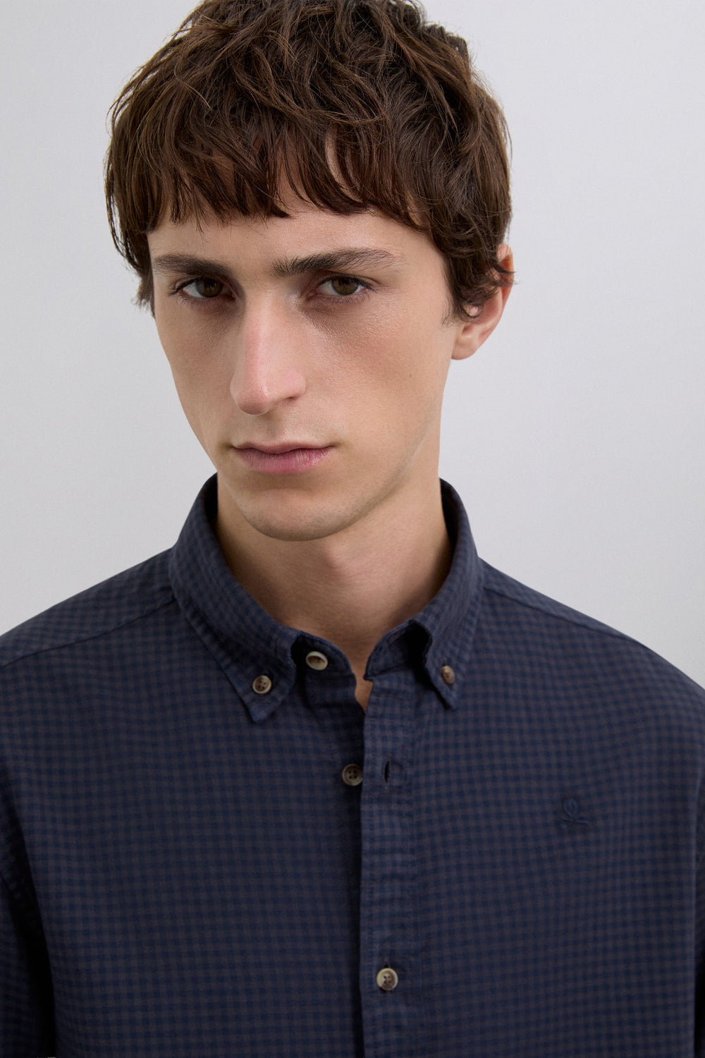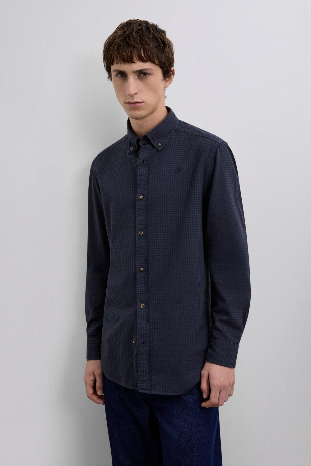 Camisa confecionada em tecido 100% algodão. Regular fit. Gola abotoada. Manga comprida. Punhos com botões. Pormenor de logótipo bordado em contraste no peito.
