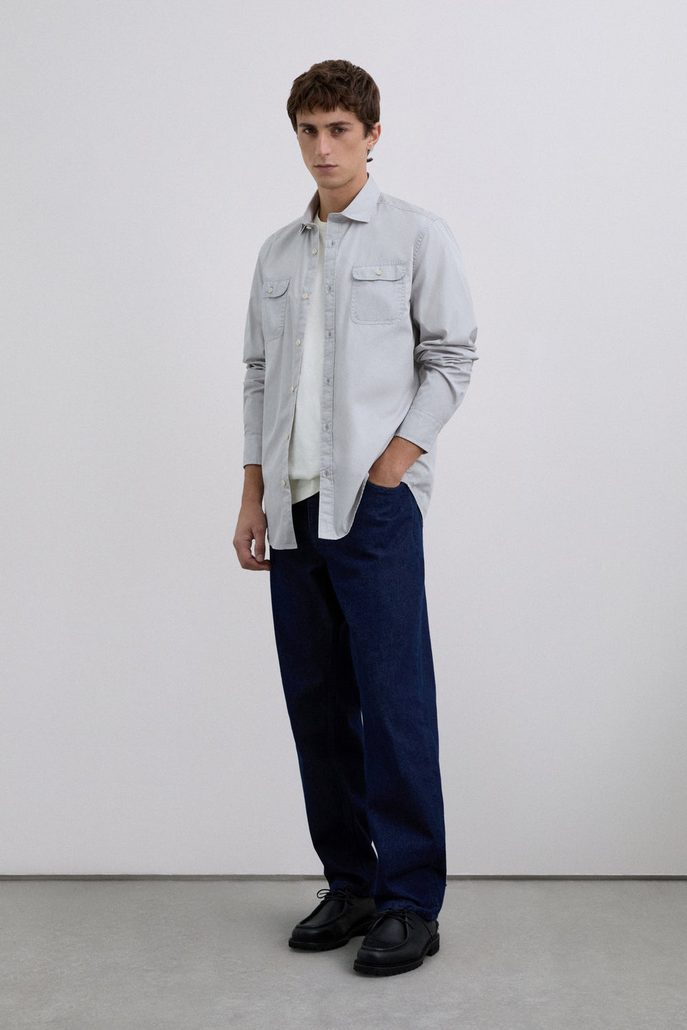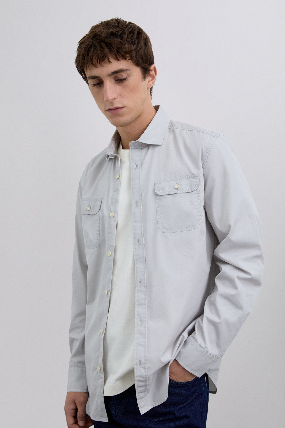 Camisa confecionada em algodão. Regular fit. Manga comprida com punhos de botão. Fecho com botões à frente. Bolsos de remendo no peito.