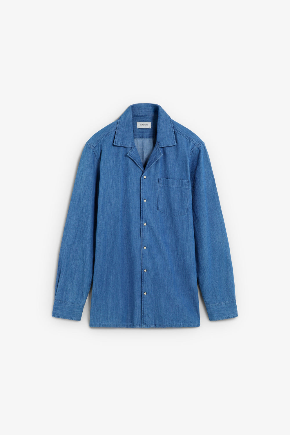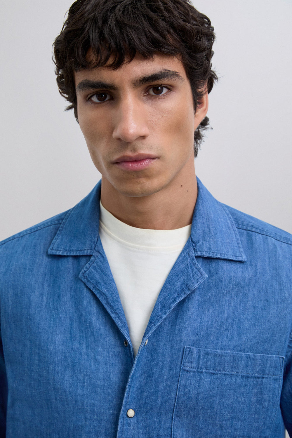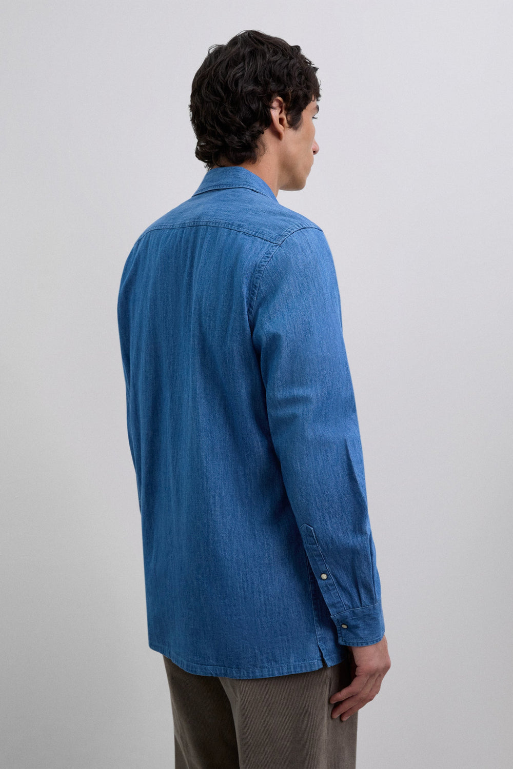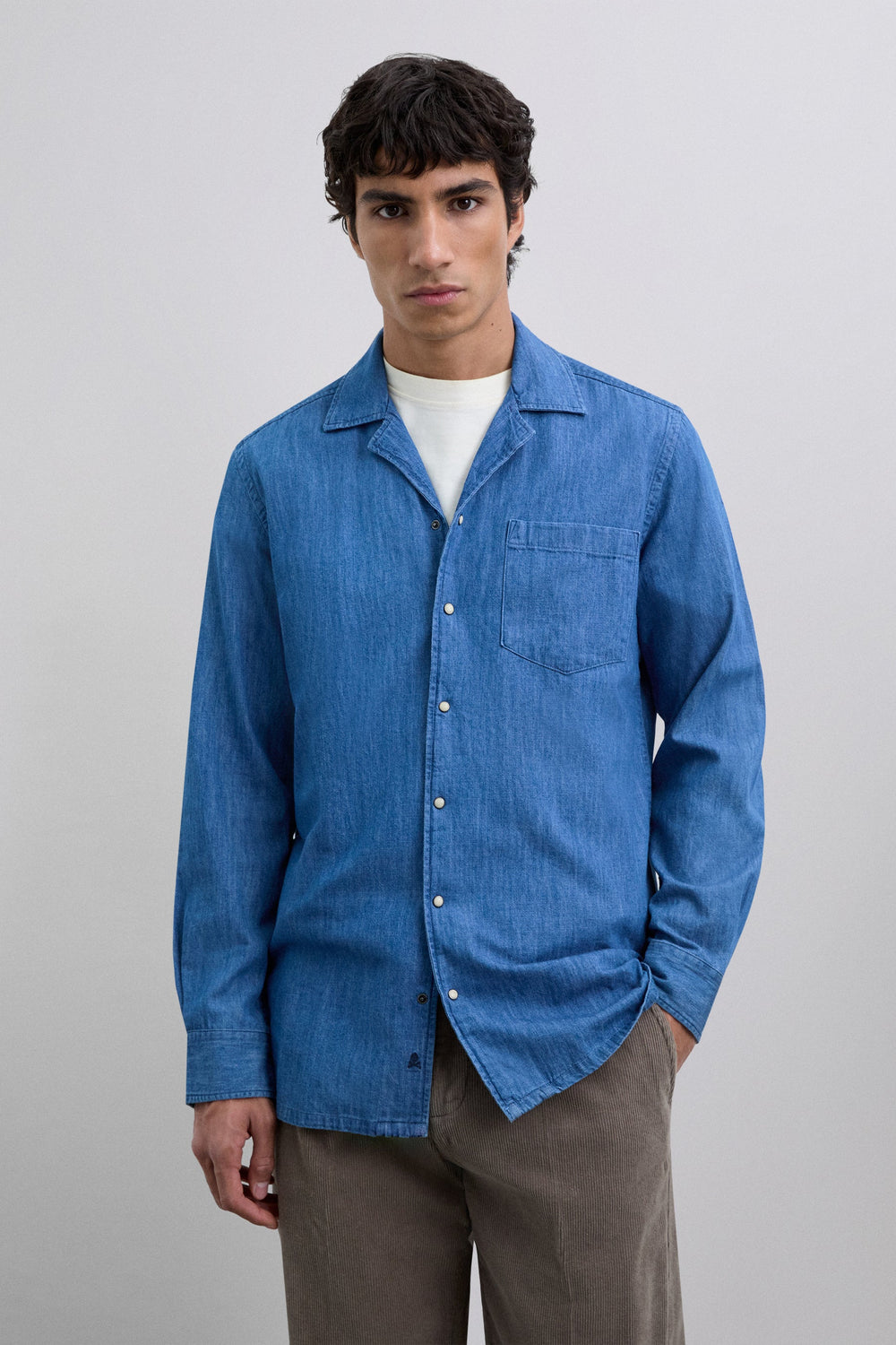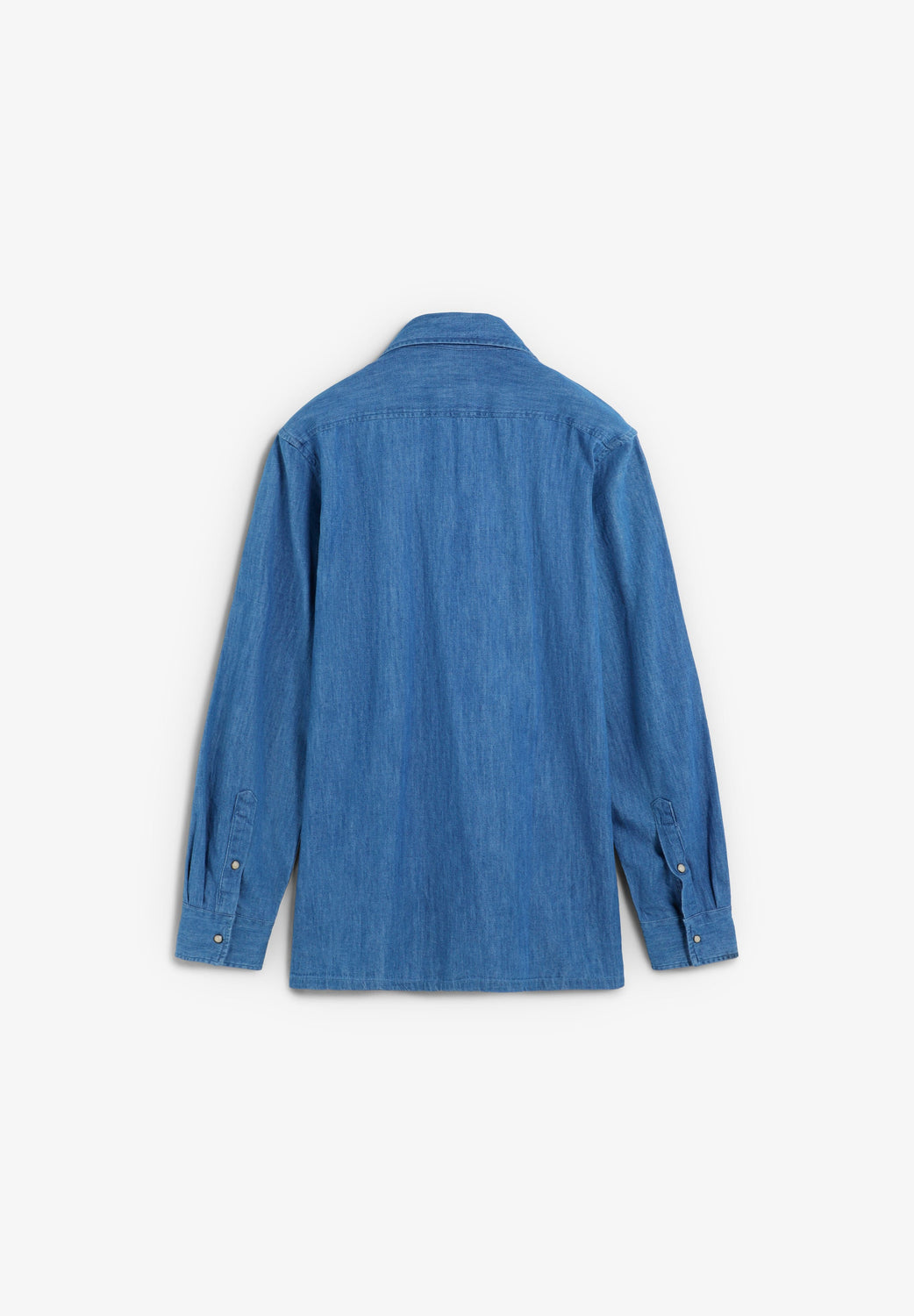 Camisa denim confecionada em 100% algodão BCI. Regular fit. Colarinho de camisa. Abotoadura à frente. Manga comprida. Abotoadura nos punhos. Bolso no peito. Pormenor de logótipo bordado na placket.