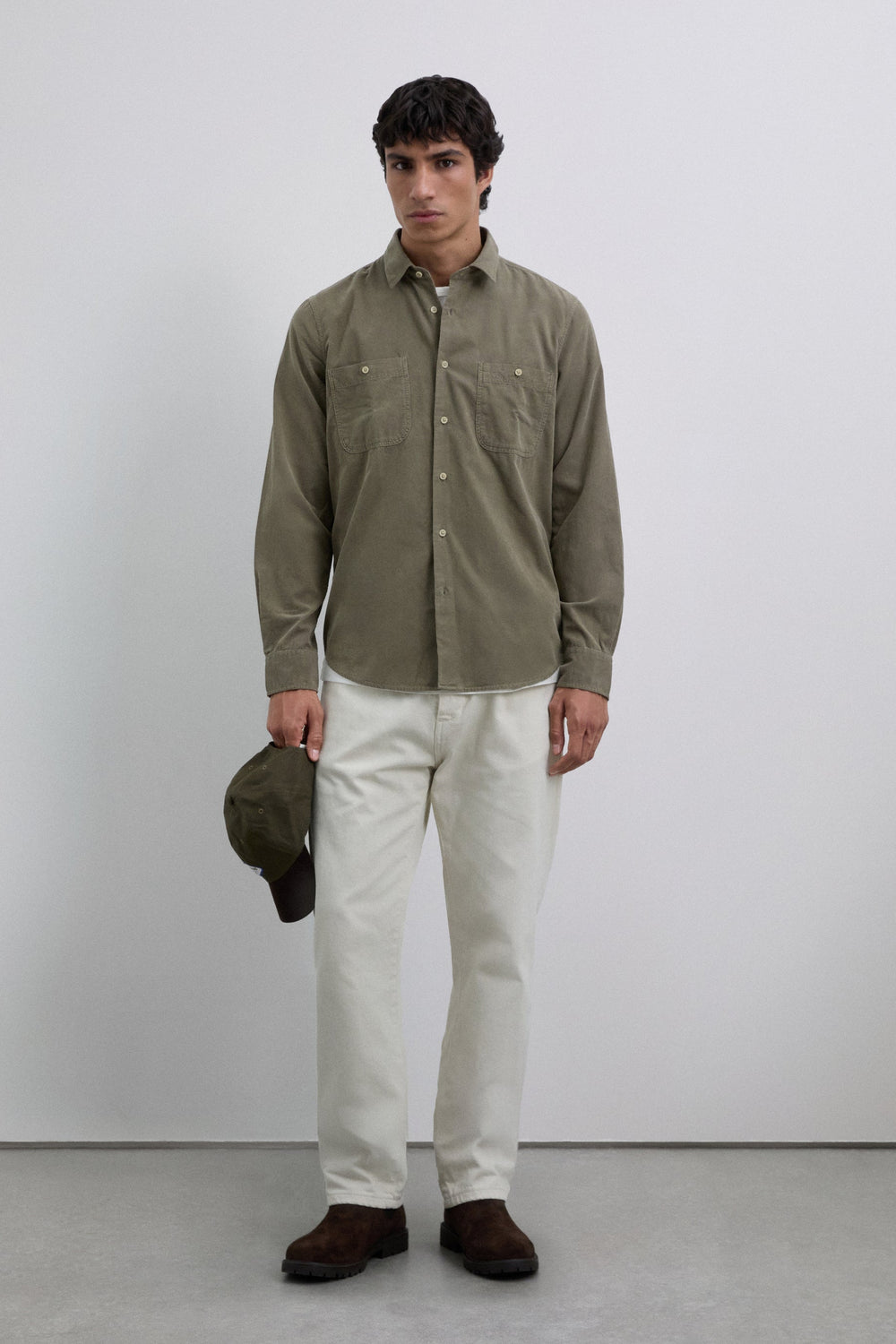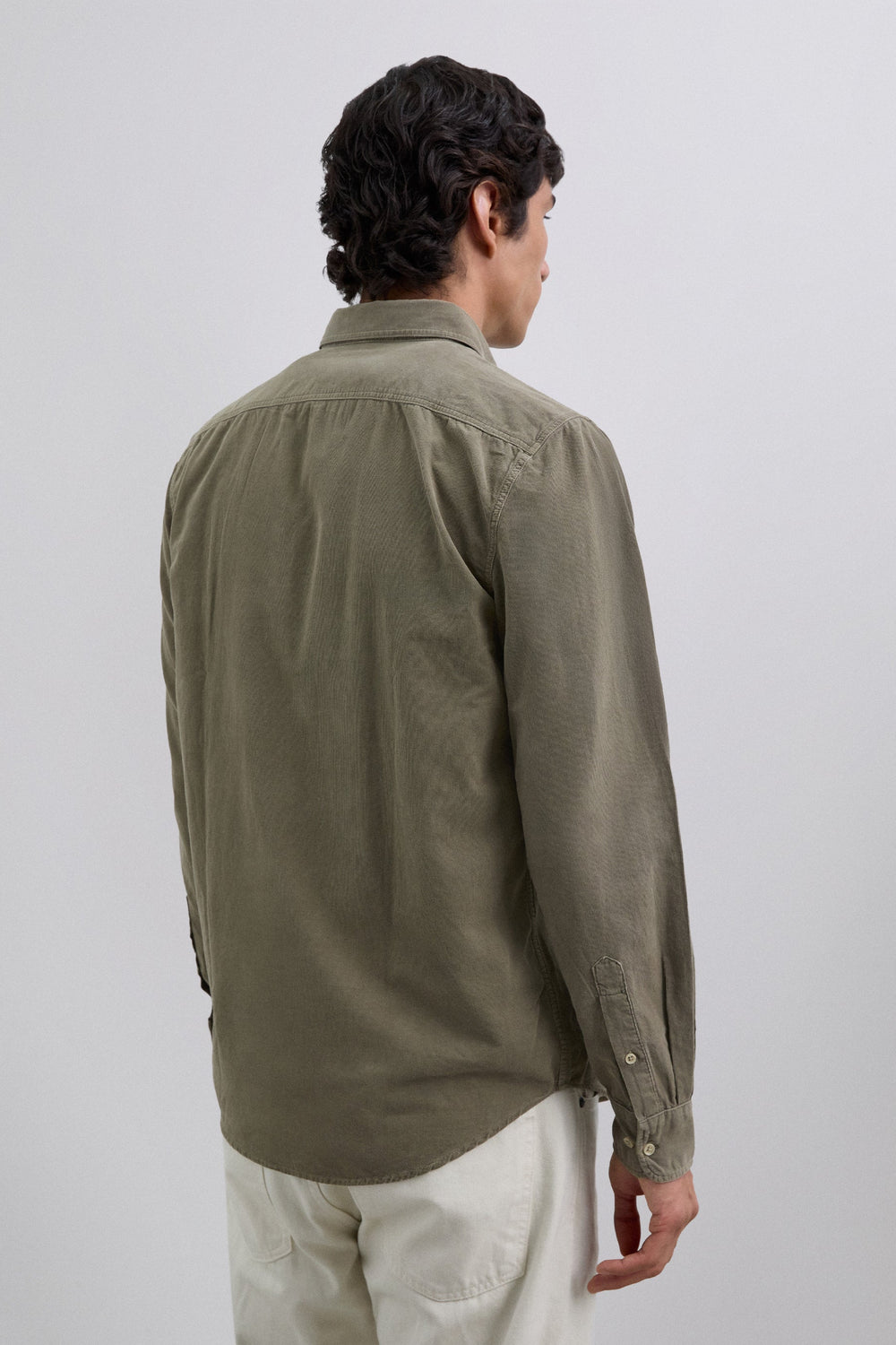 Camisa confecionada em bombazina de 100% algodão BCI. Regular fit. Manga comprida acabada em punho com botão. Bolsos de chapa no peito. Fecho à frente com abotoadura.