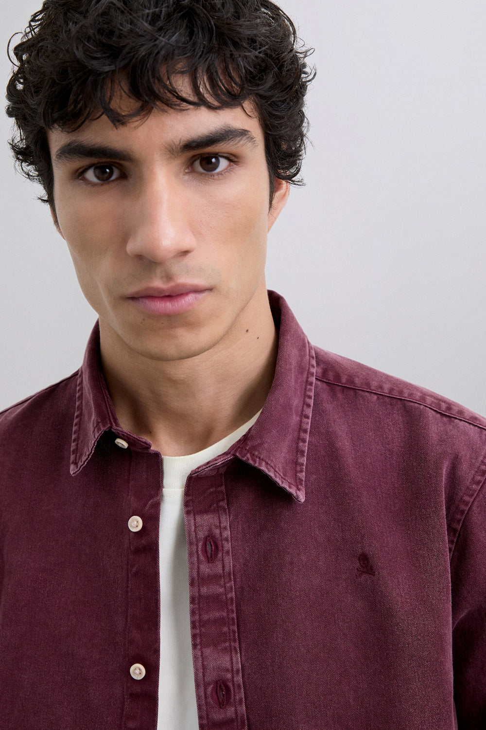 Camisa ou camisa comprida confecionada em 100% algodão. Corte regular, gola com botões e fecho de botões. Manga comprida com punhos abotoados e skull bordada.