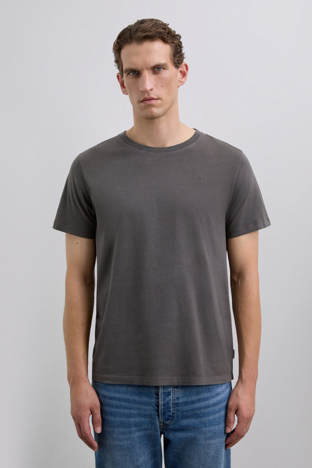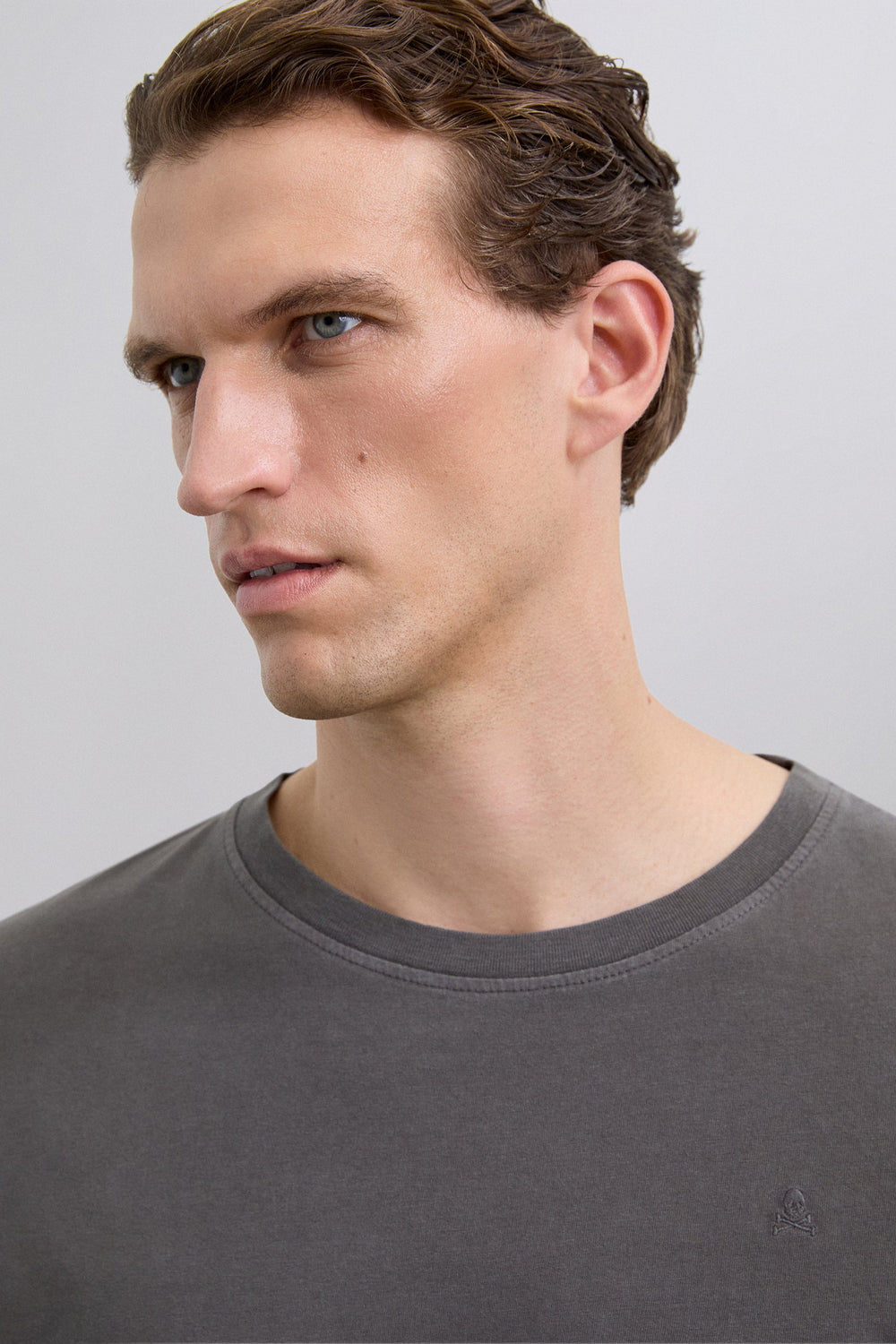T-shirt confecionada em 100% algodão BCI. Regular fit, decote redondo e manga curta. Pormenor de skull bordada no tom.