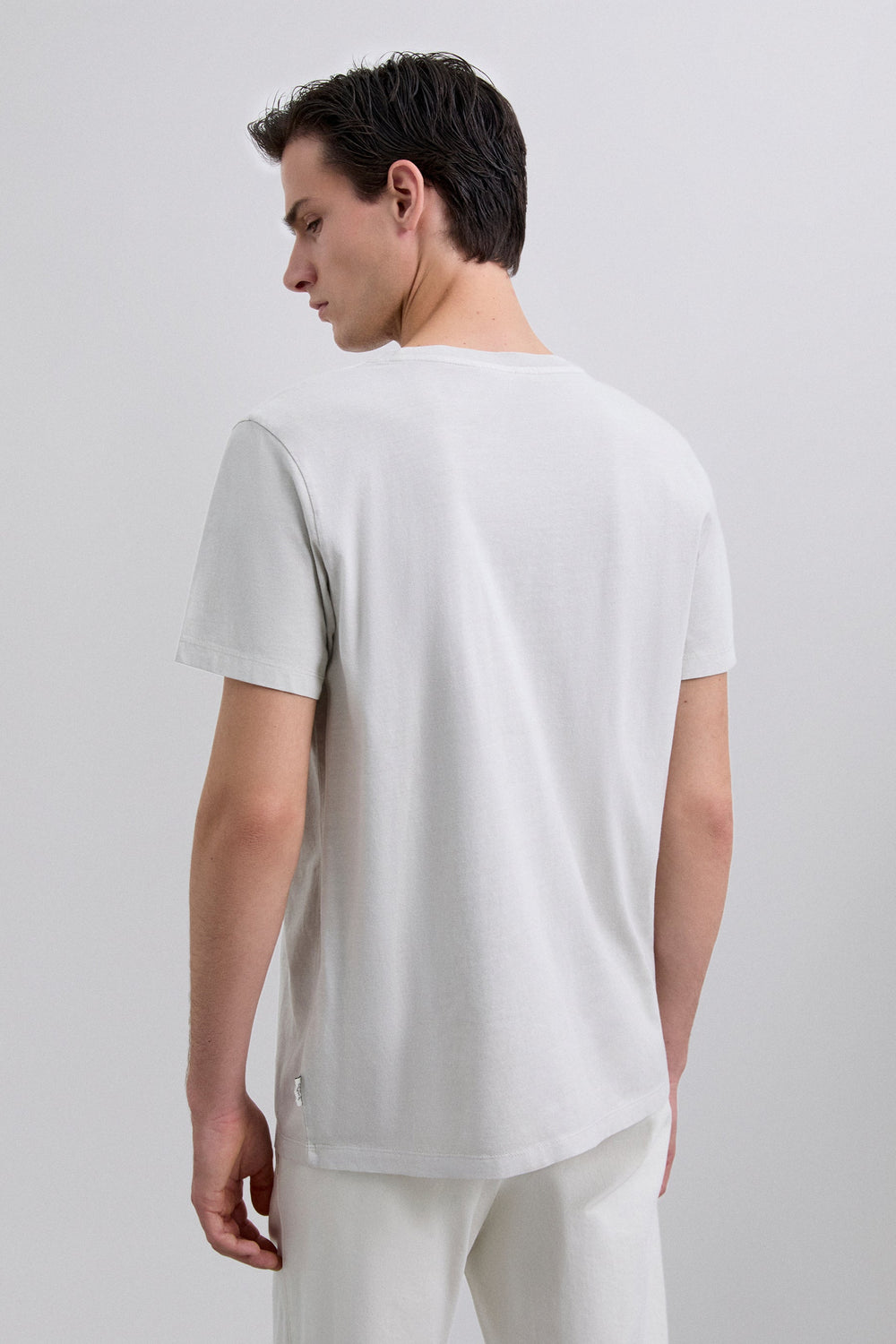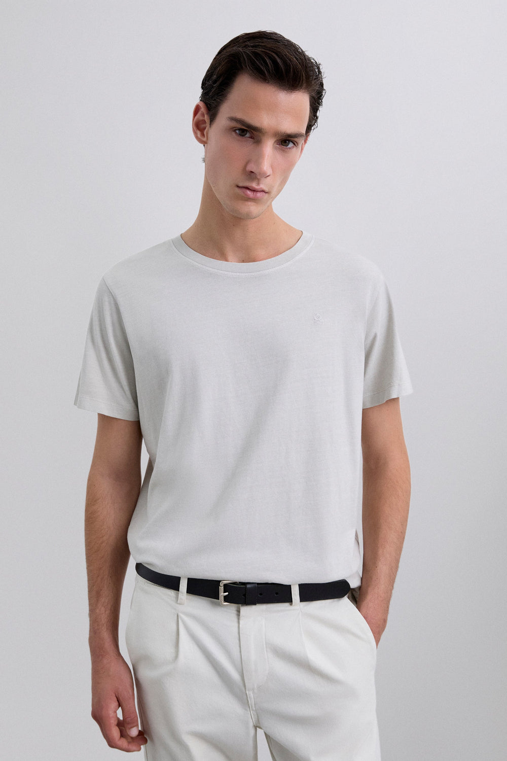 T-shirt confecionada em 100% algodão BCI. Regular fit, decote redondo e manga curta. Pormenor de skull bordada no tom.