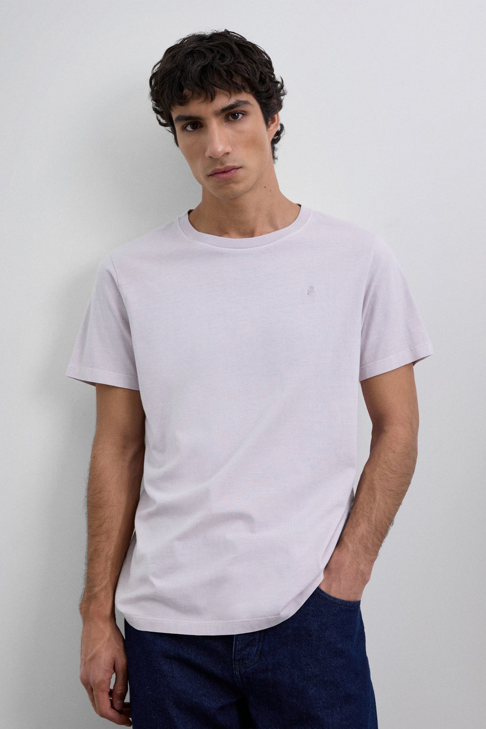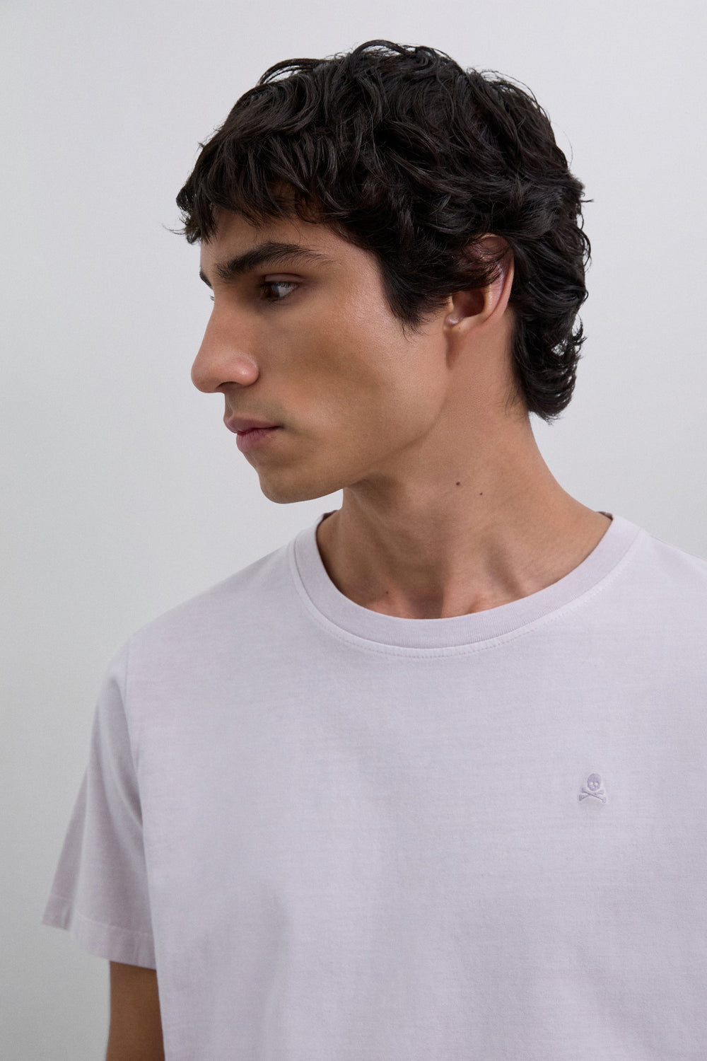 T-shirt confecionada em 100% algodão BCI. Regular fit, decote redondo e manga curta. Pormenor de skull bordada no tom.
