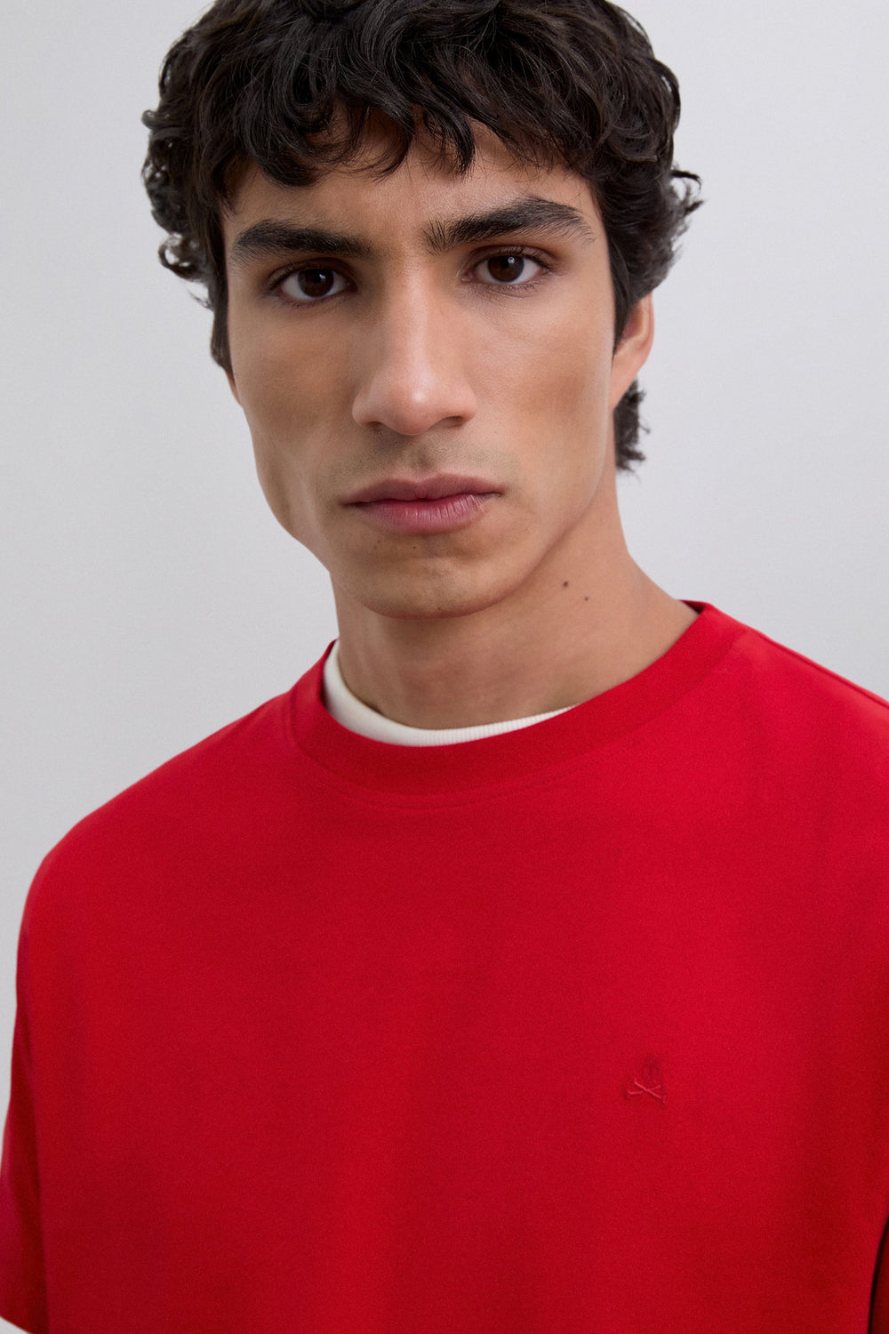 T-shirt confecionada em 100% algodão BCI. Skull bordada no tom. Corte Regular Fit. Decote redondo. Manga curta.
