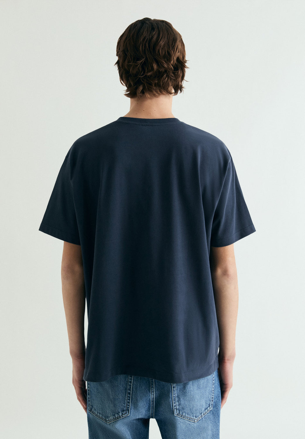 T-shirt confecionada em 100% algodão BCI de 300 GSM. Manga curta. Boxy fit. Efeito desbotado. Decote redondo. Acabamentos canelados.