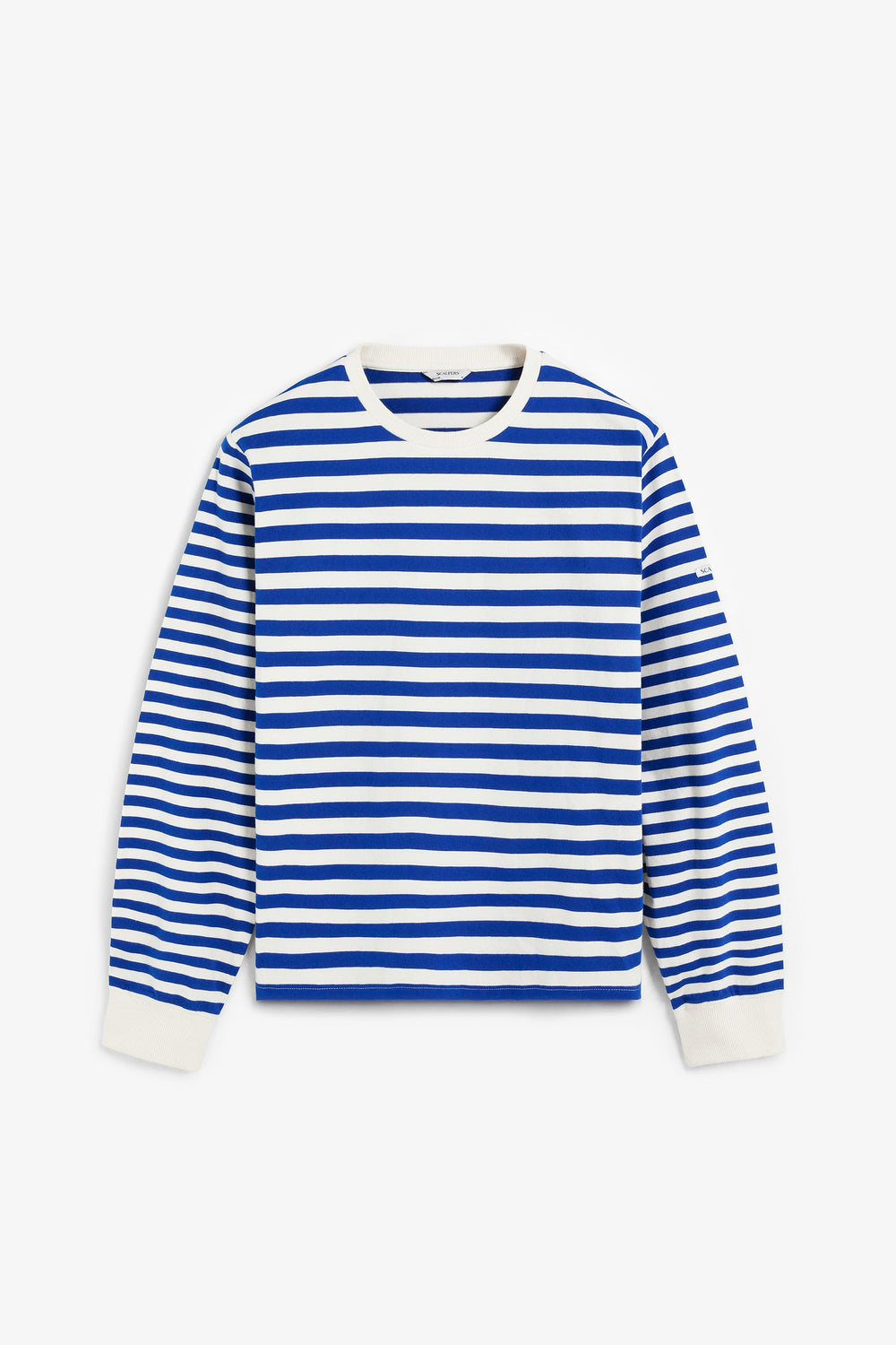 T-shirt com estampado às riscas. Confecionada em 100% algodão BCI. Corte Regular Fit. Decote redondo. Contraste na gola e nos punhos. Manga comprida.