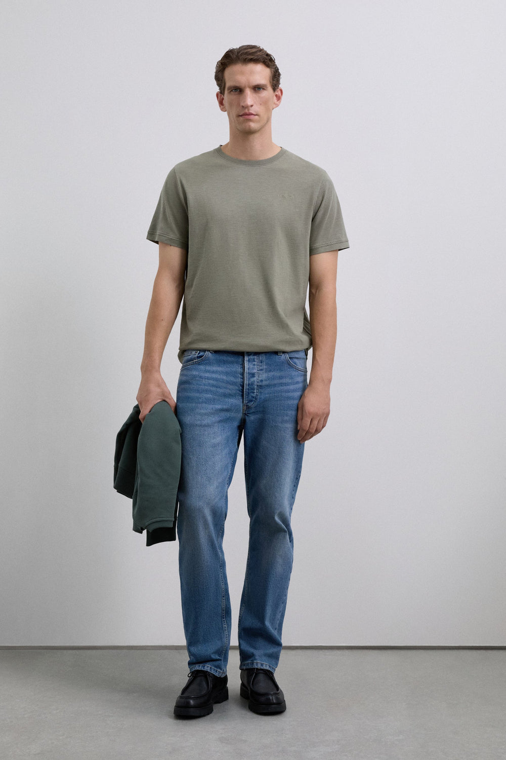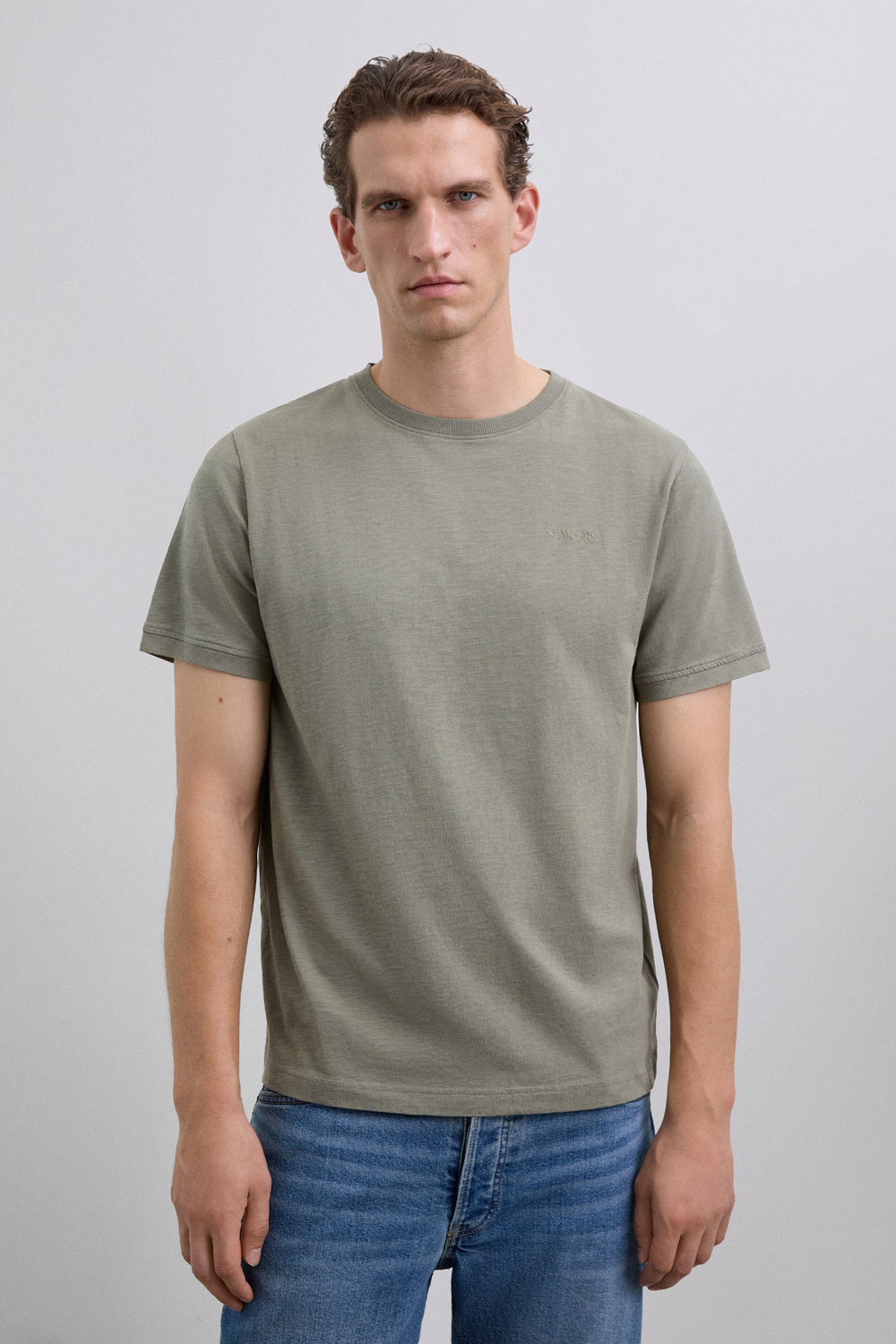 T-shirt confecionada em 100% algodão orgânico. Regular fit. Manga curta. Decote redondo. Efeito desbotado. Logótipo bordado no tom no peito. Gola canelada.