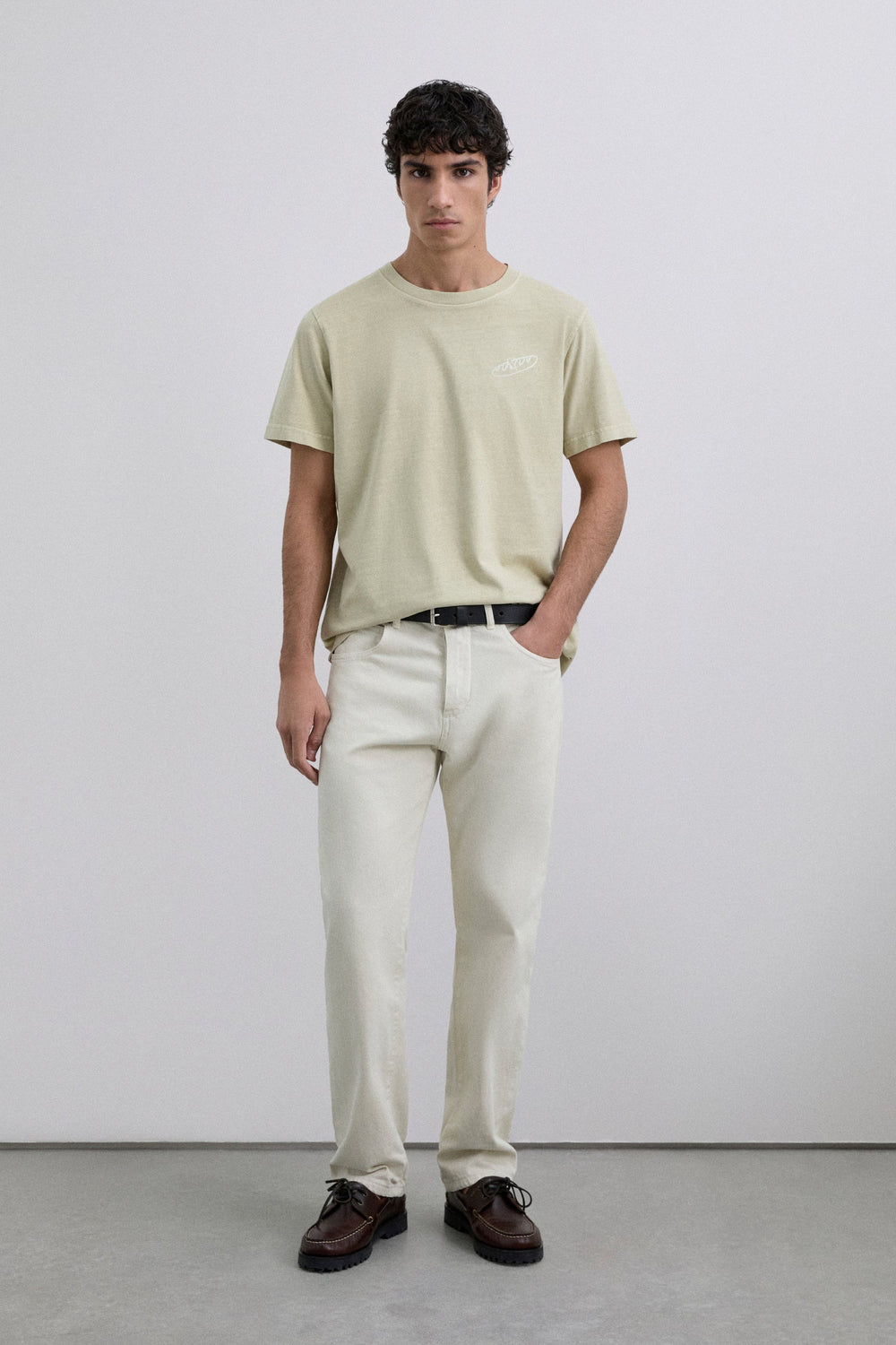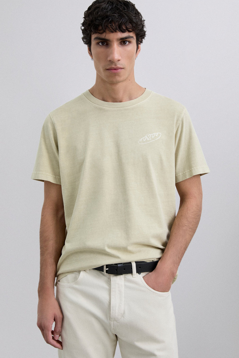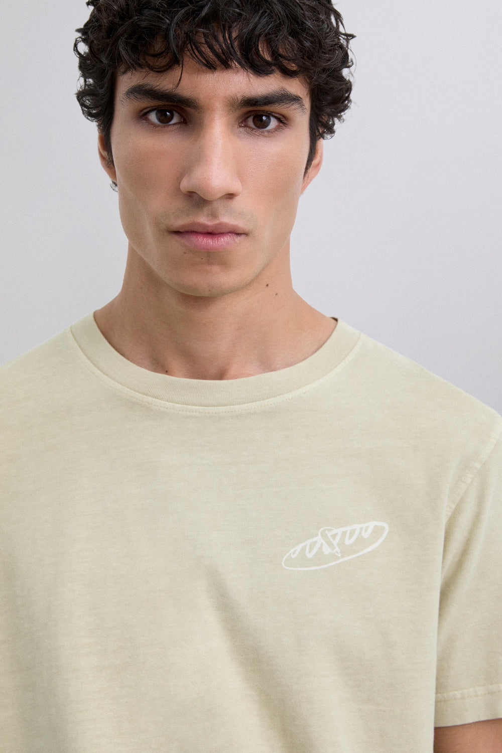 T-shirt com padrão no peito e atrás. Confecionada em 100% algodão BCI. Corte Regular Fit. Decote redondo. Manga curta.