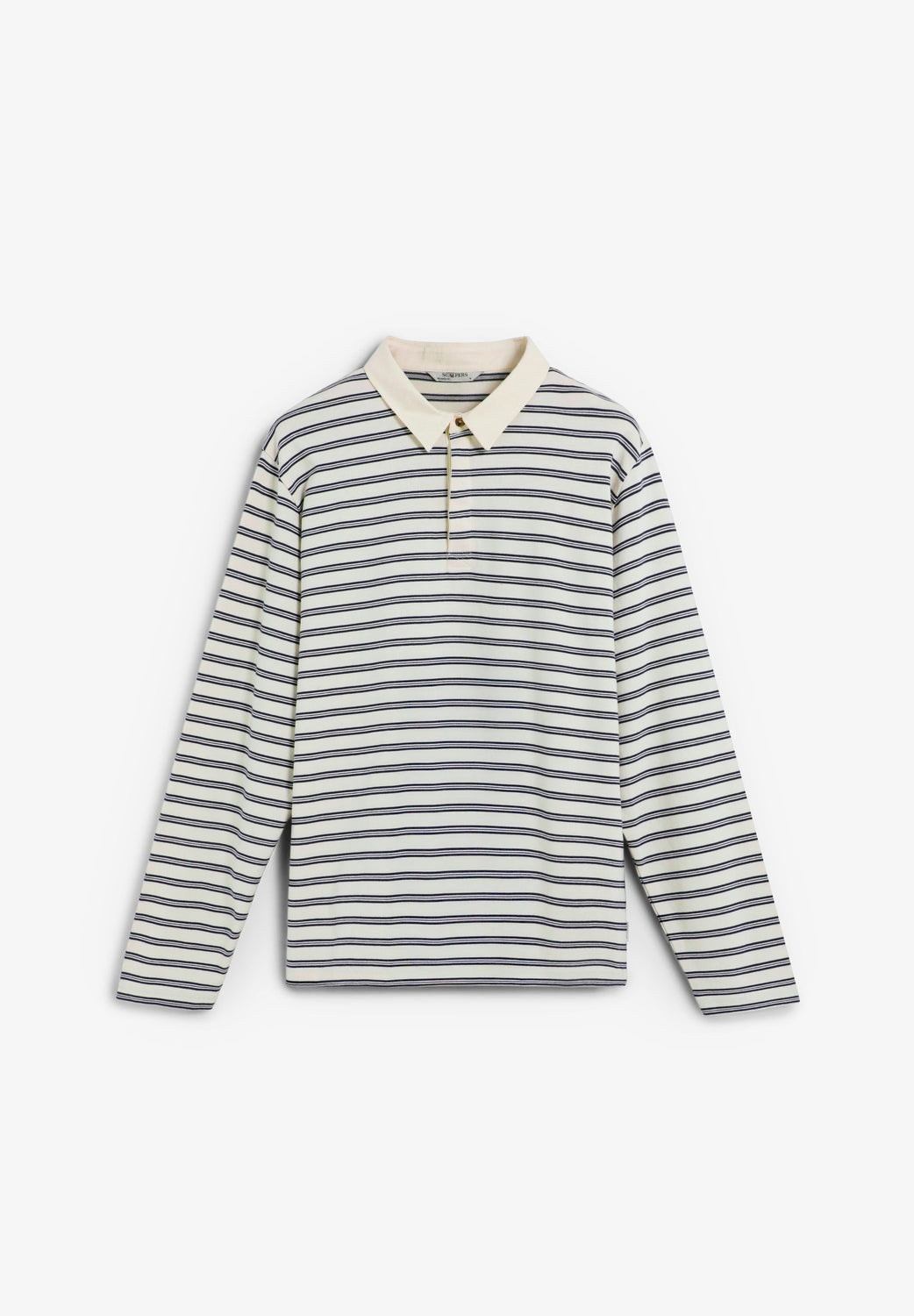 Camisa polo confecionada em tecido de malha 100% algodão BCI. Relaxed fit. Manga comprida. Gola de sarja em contraste. Fecho de quatro botões com placket oculta.