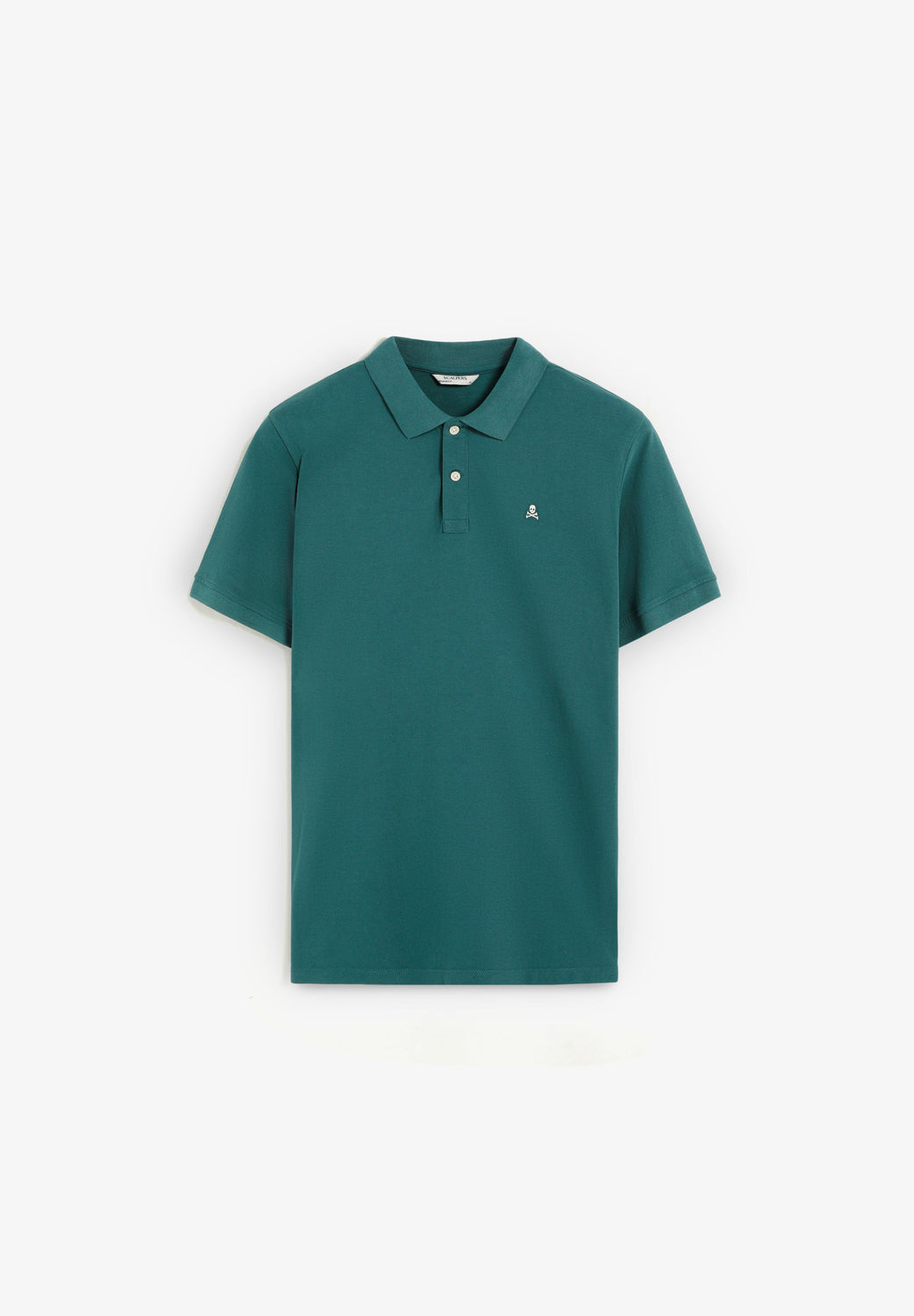 Camisa polo em piqué confecionada em 100% algodão orgânico. Manga curta. Corte regular. Placket com dois botões. Gola e punhos canelados. Skull bordada em contraste no peito.