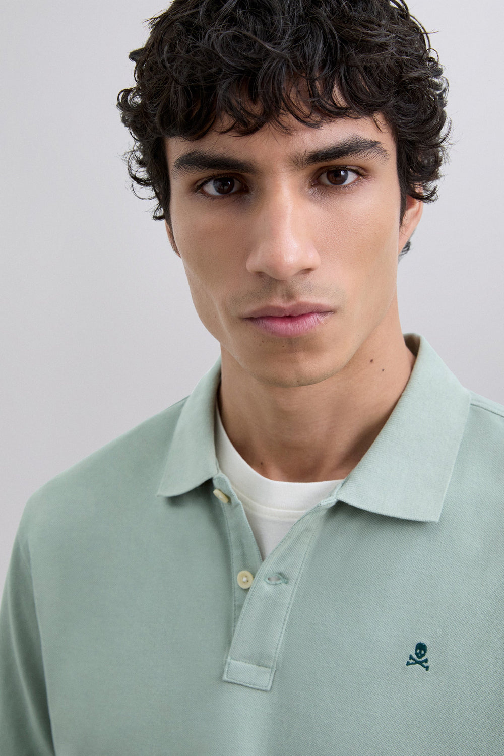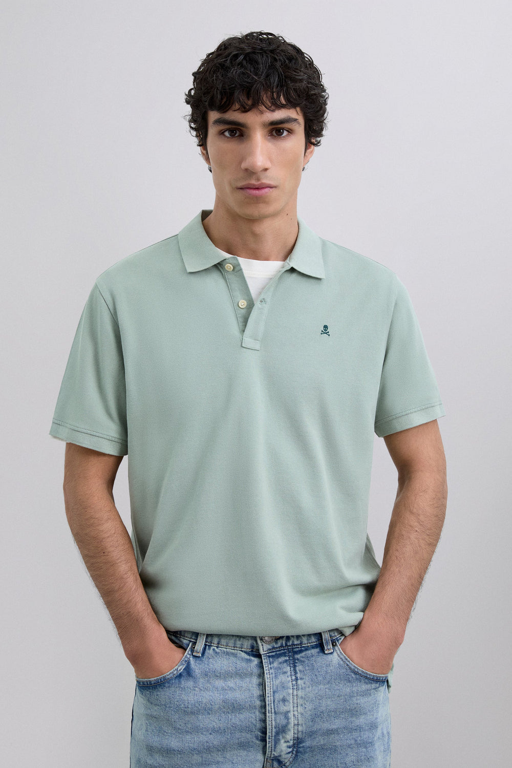 Camisa polo em piqué confecionada em 100% algodão orgânico. Manga curta. Corte regular. Placket com dois botões. Gola e punhos canelados. Skull bordada em contraste no peito.
