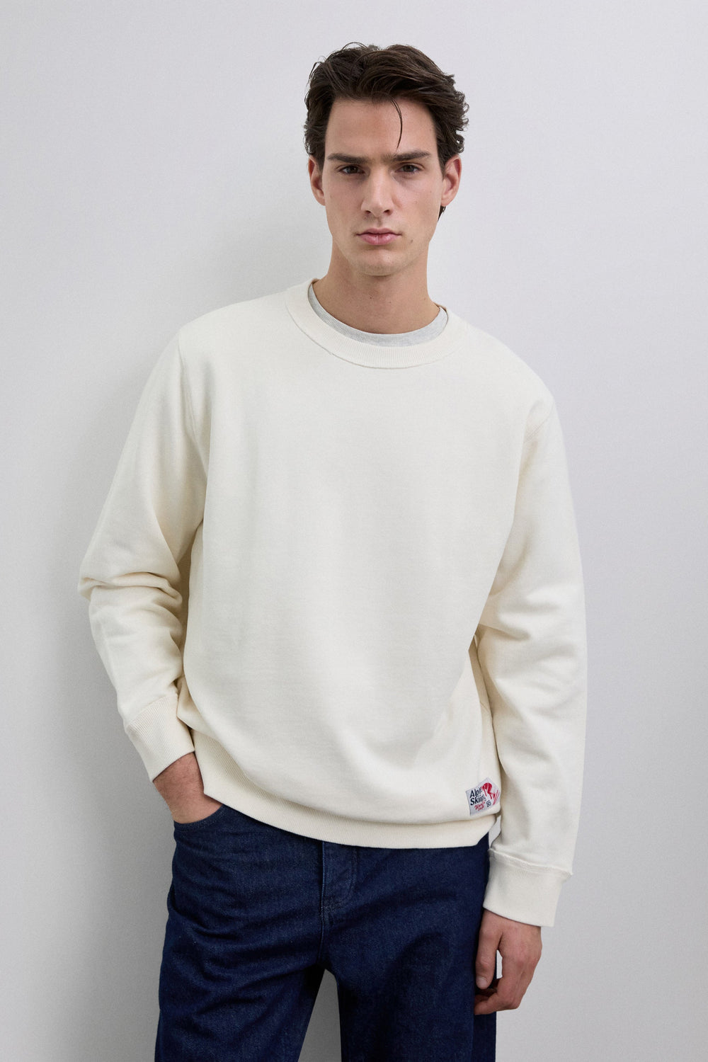 Sweatshirt confecionada em 100% algodão BCI. Decote redondo. Relaxed fit. Padrão em contraste nas costas. Punhos e bainha canelados. Pormenor de etiqueta na bainha esuqerda.