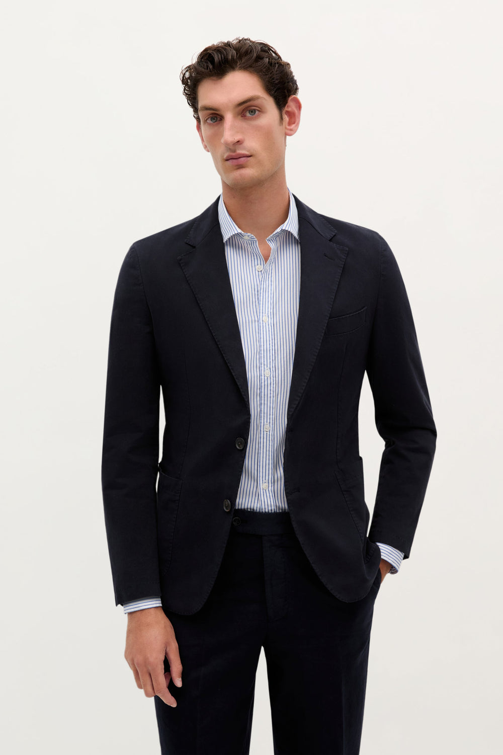 Blazer leve. Confeção em 100% algodão. Corte regular fit sem armação sem forro. Gola com lapela entalhada. Fecho com botões. Manga comprida com botões praticáveis e um fechado. Bolsos de remendo.