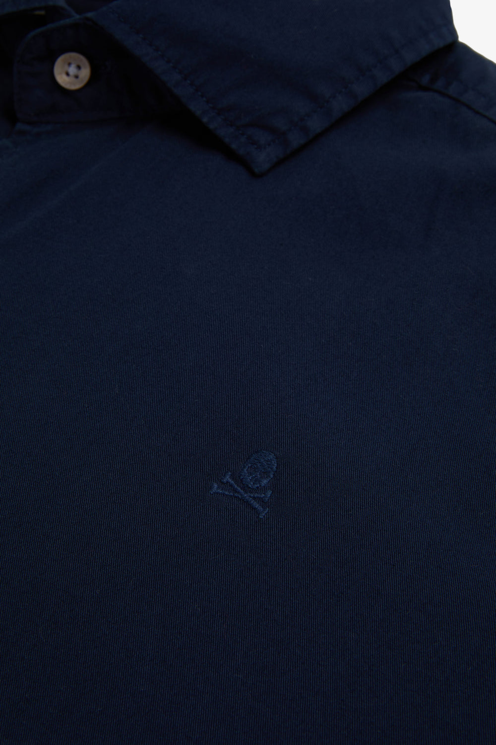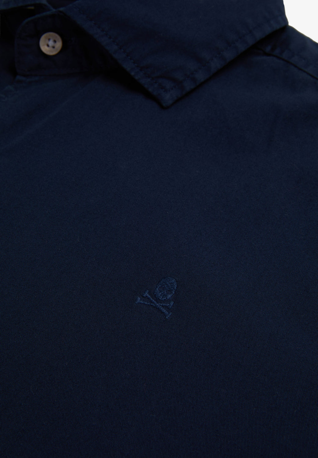 Camisa confecionada em tecido 100% algodão BCI. Regular fit. Fecho com botões. Manga comprida com punhos terminados com botão. Skull bordada no peito no tom.