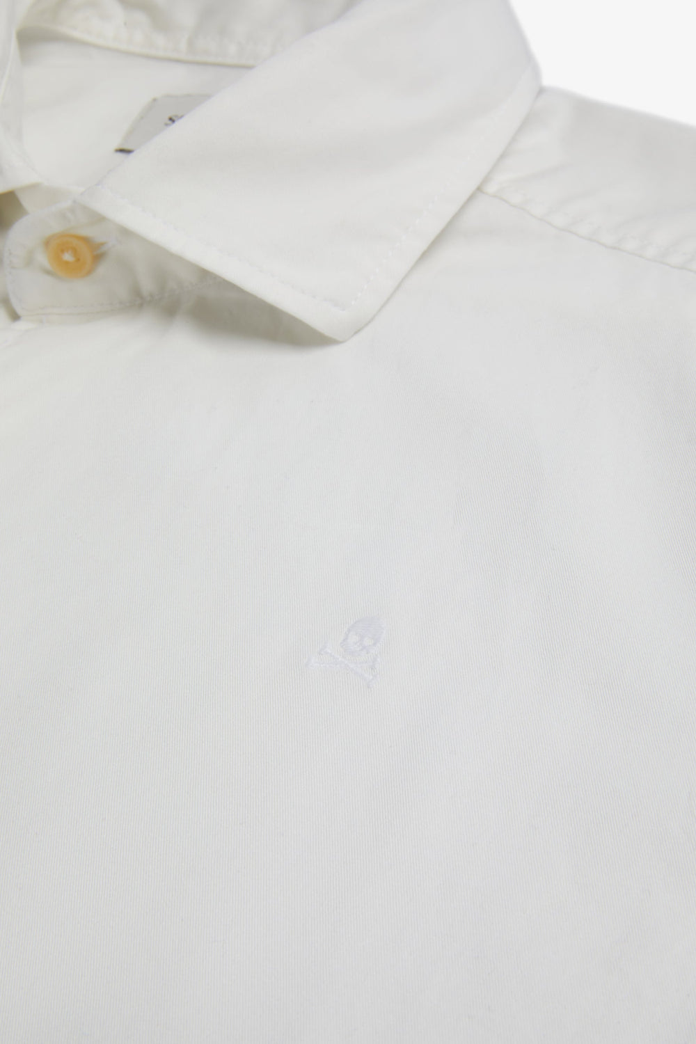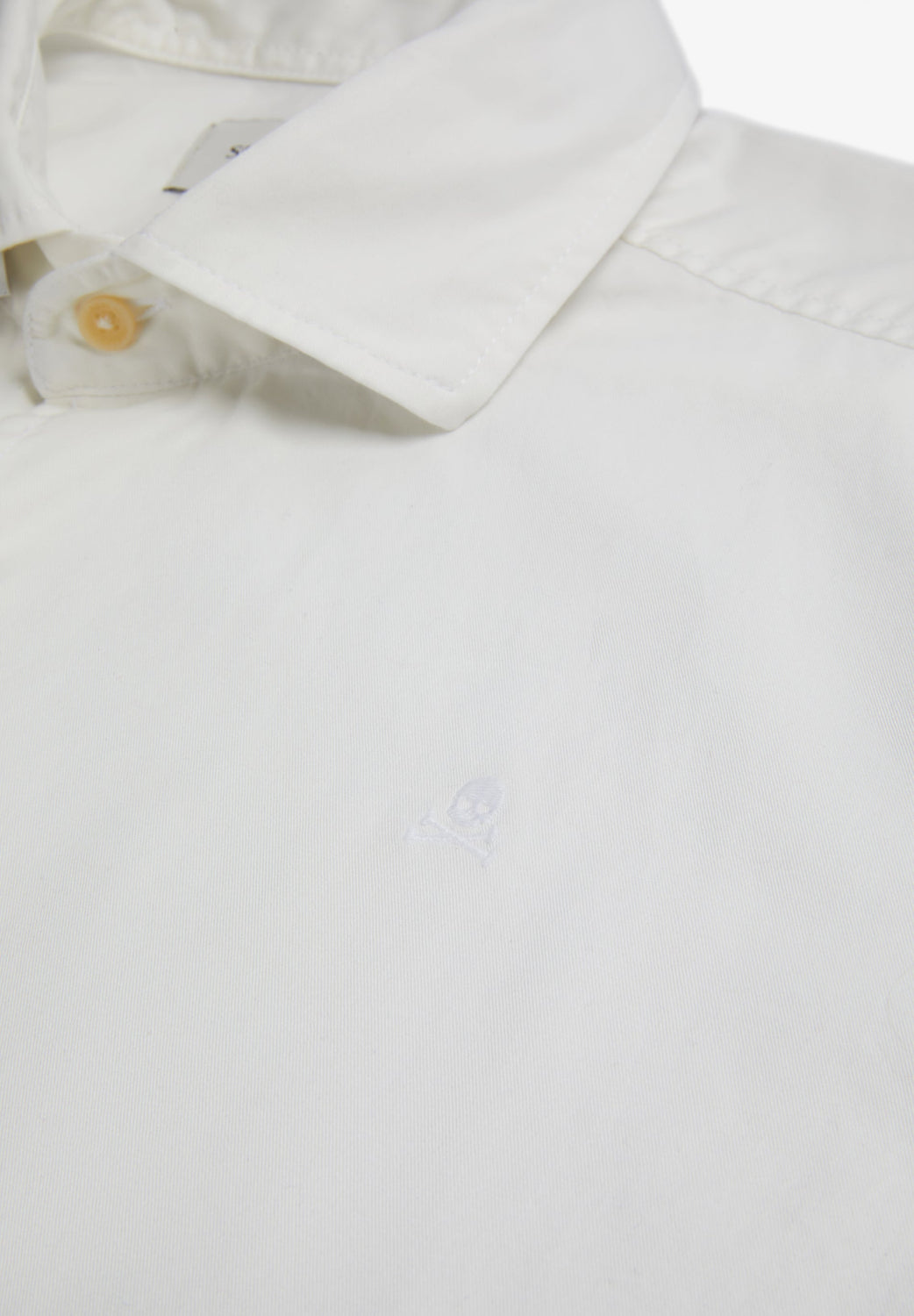 Camisa confecionada em tecido 100% algodão BCI. Regular fit. Fecho com botões. Manga comprida com punhos terminados com botão. Skull bordada no peito no tom.