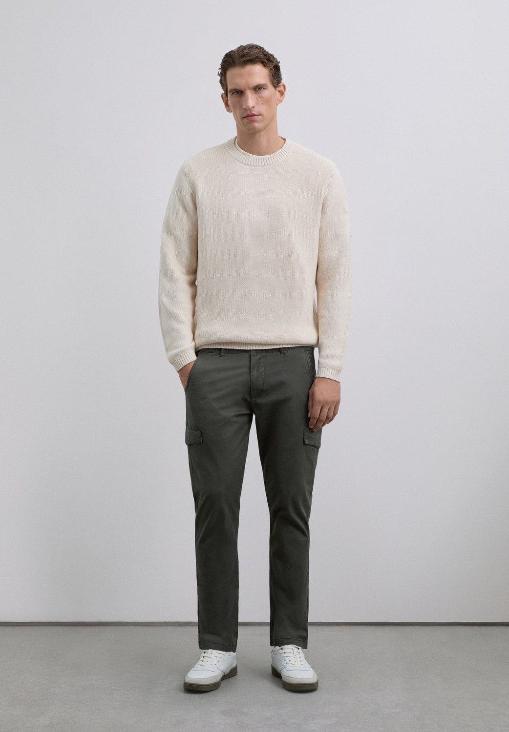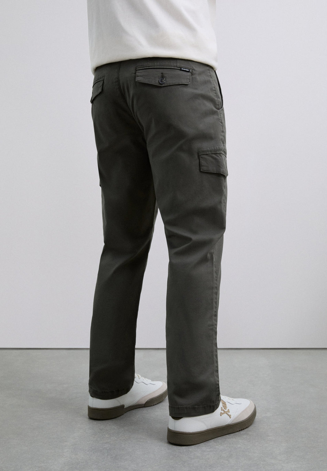 Calças cargo confecionadas em algodão BCI. Slim Fit. Dois bolsos frontais, traseiros com fecho de botão e laterais com aba. Cintura com presilhas e fecho de botão e fecho de correr. Pormenor de logótipo no bolso traseiro.