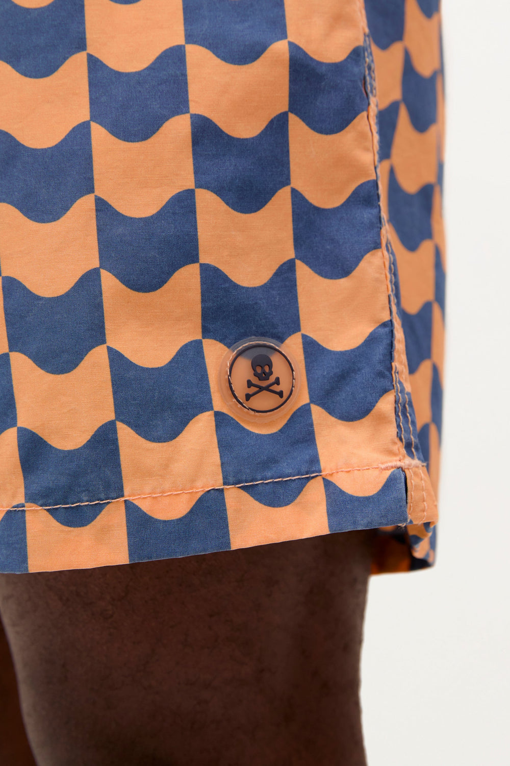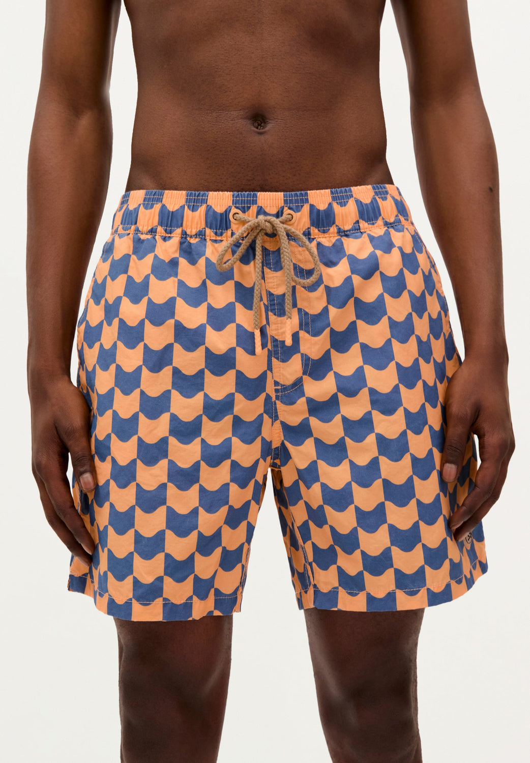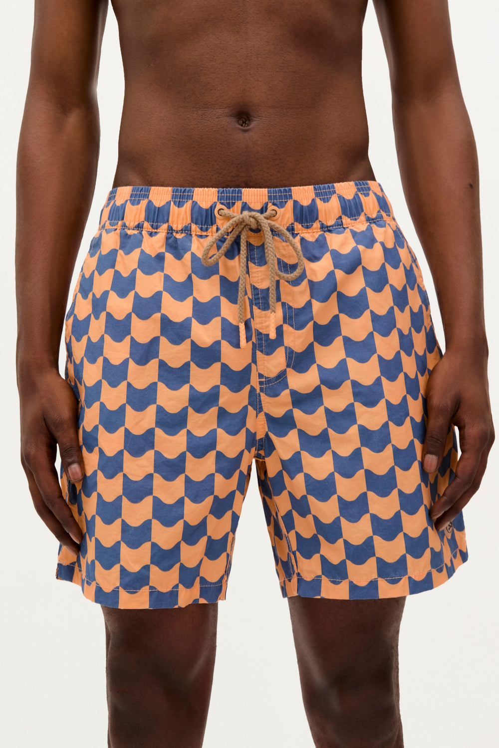 Fato de banho confecionado em tecido técnico. Cintura elástica ajustável com cordão. Bolsos laterais e pormenor de bolso de patch traseiro. Forro.