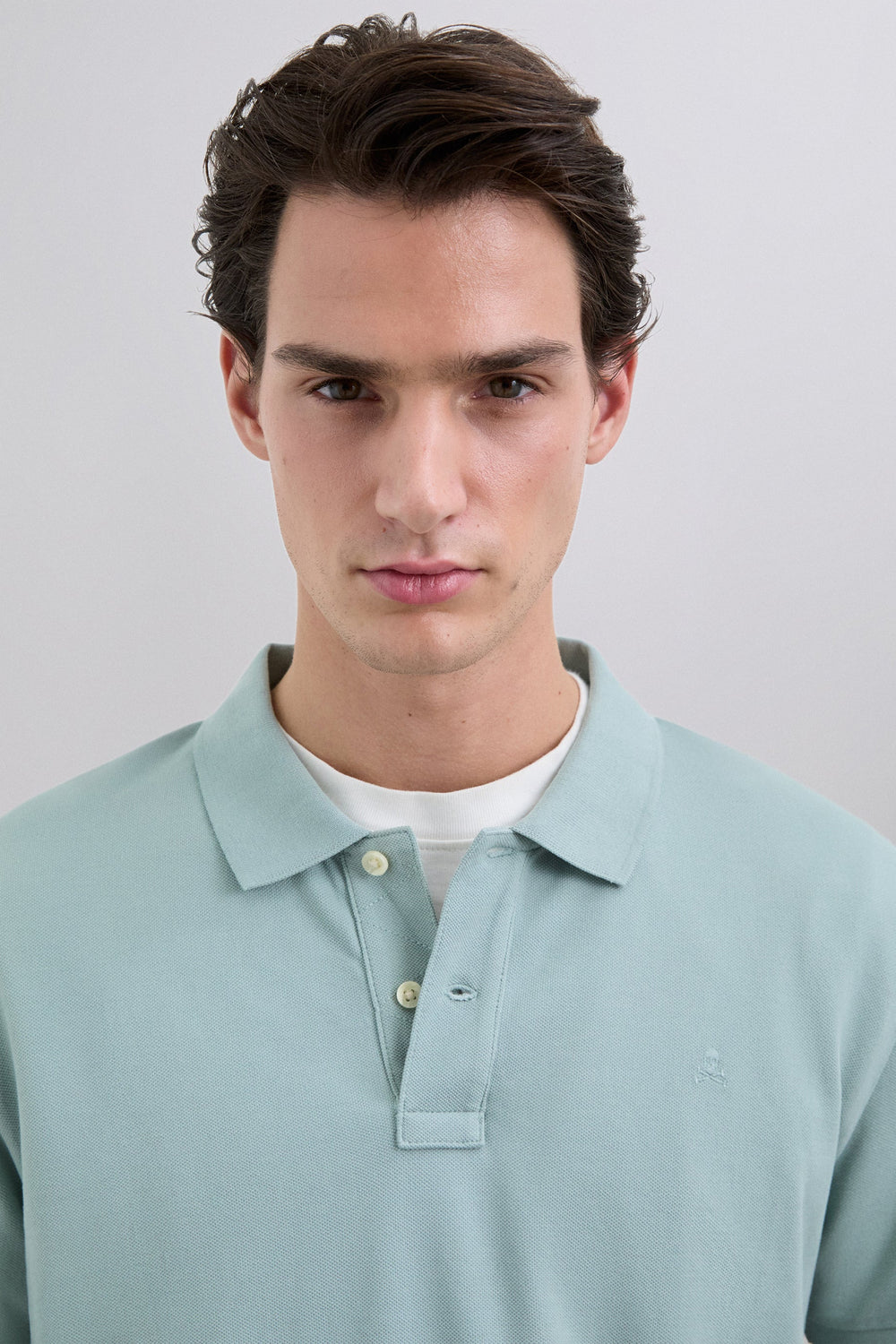Camisa polo básica confecionada em 100% algodão BCI. Regular fit, colarinho clássico e fecho com botões. Manga curta e skull bordada no tom.