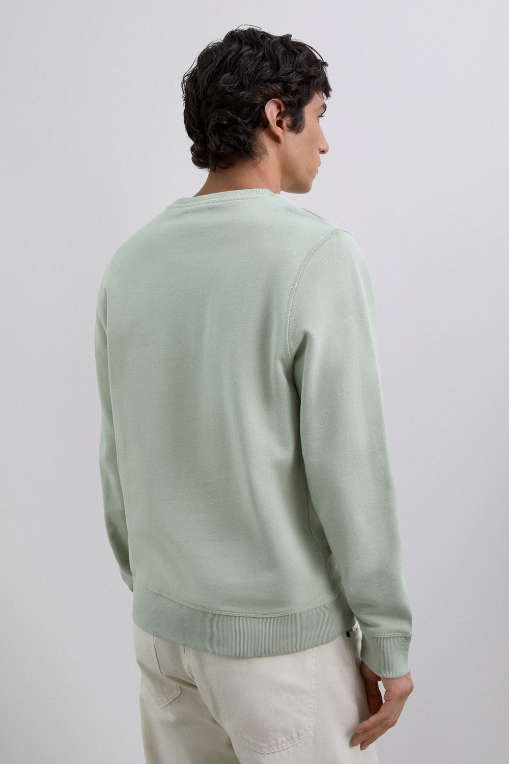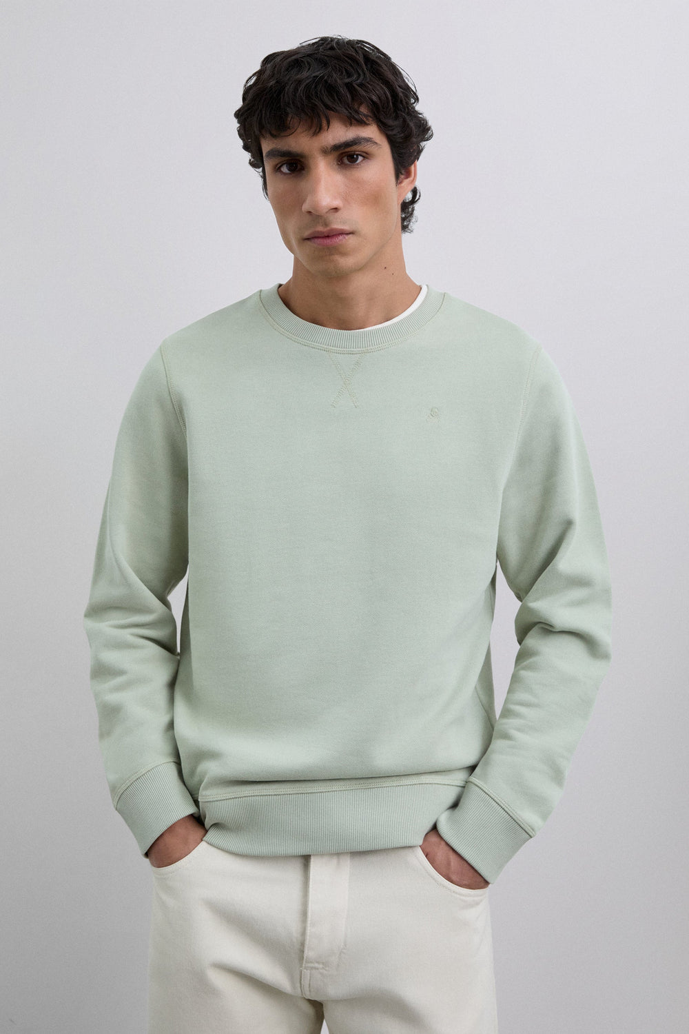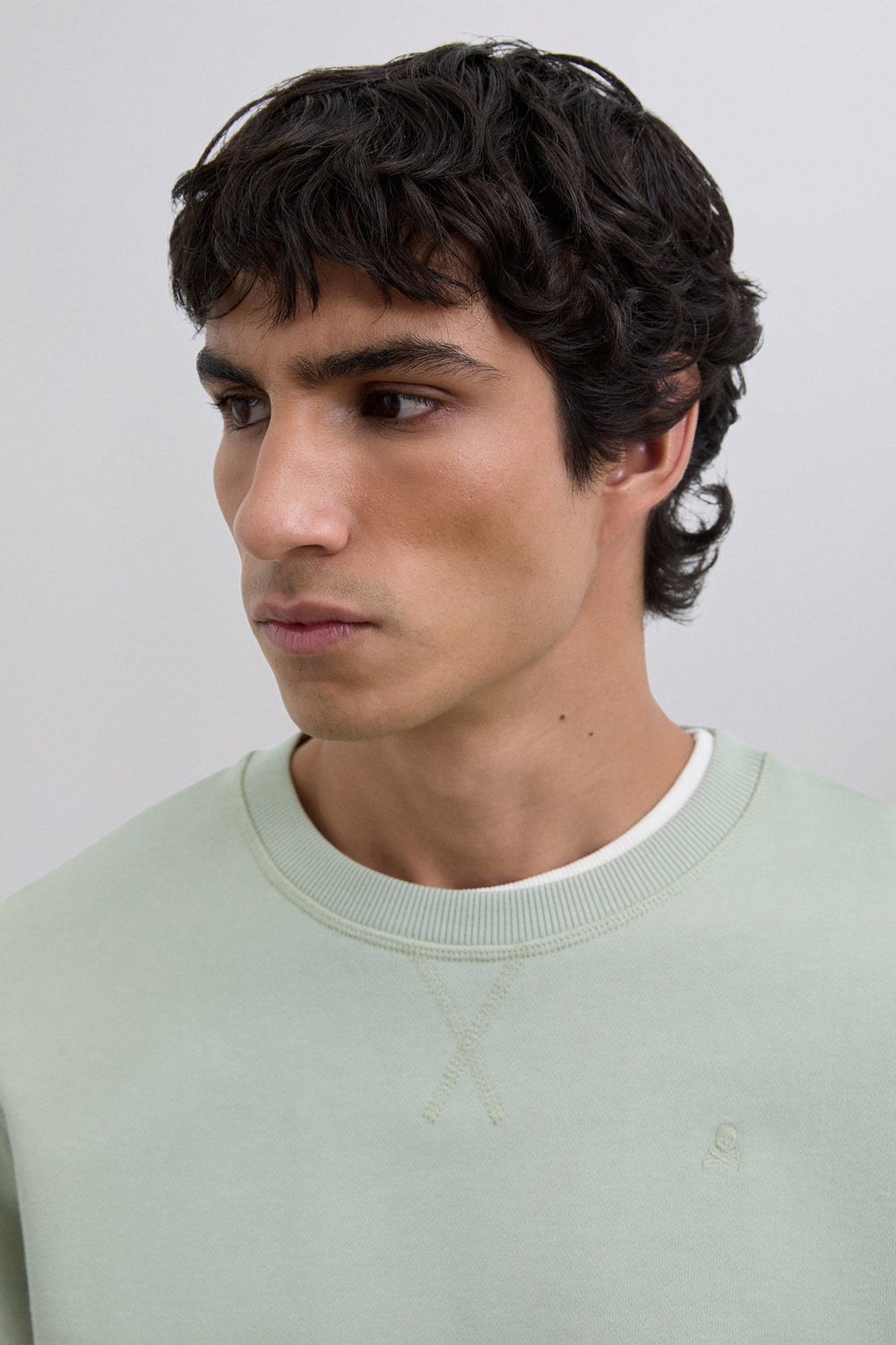 Sweatshirt básica confecionada em 100% algodão BCI. Regular fit, decote redondo e manga comprida. Skull bordada no tom.