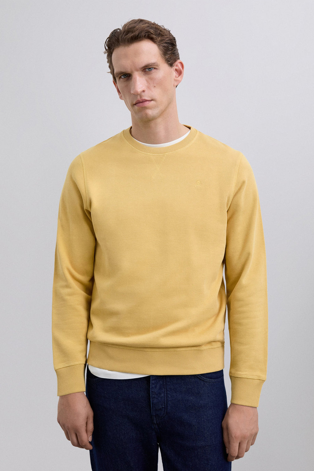Sweatshirt básica confecionada em 100% algodão BCI. Regular fit, decote redondo e manga comprida. Skull bordada no tom.