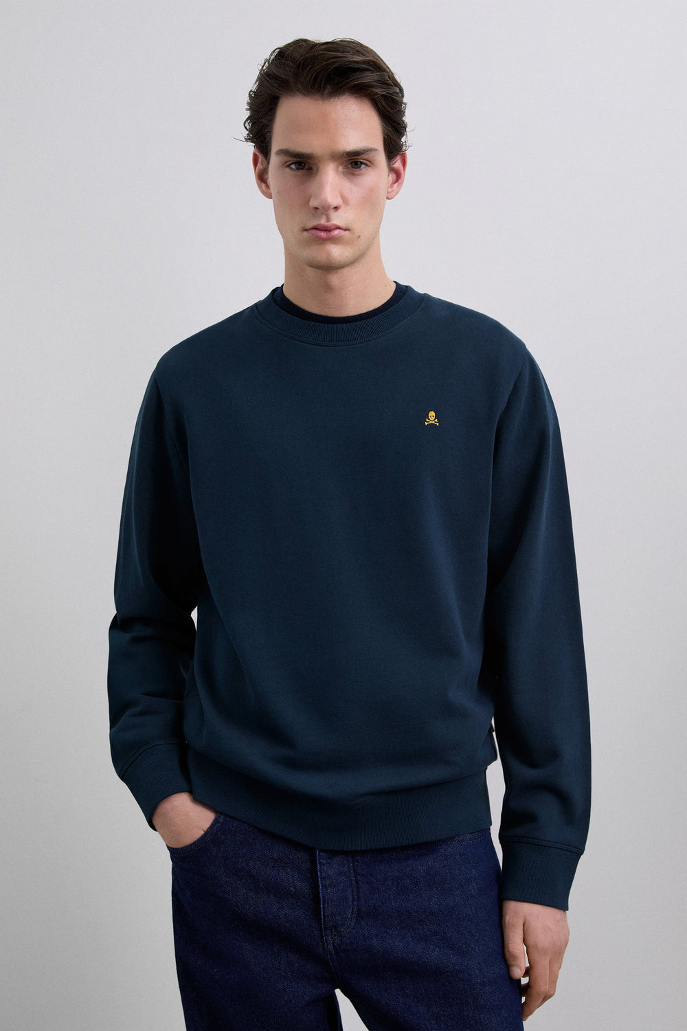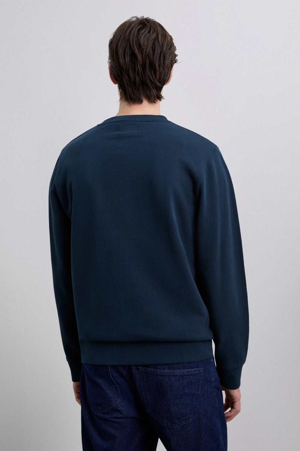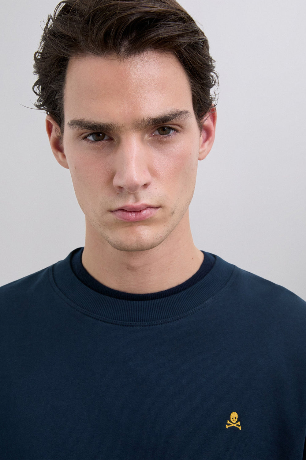 Sweatshirt confecionada em 100% algodão BCI. Regular fit. Manga comprida. Decote redondo, mangas e cintura com nervuras. Logótipo bordado a contrastar.