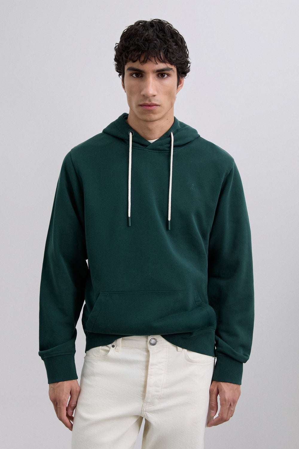 Sweatshirt confecionada em 100% algodão BCI. Regular fit. Gola com capuz ajustável. Manga comprida. Bolso tipo canguru. Cintura e punhos acabados em nervuras.