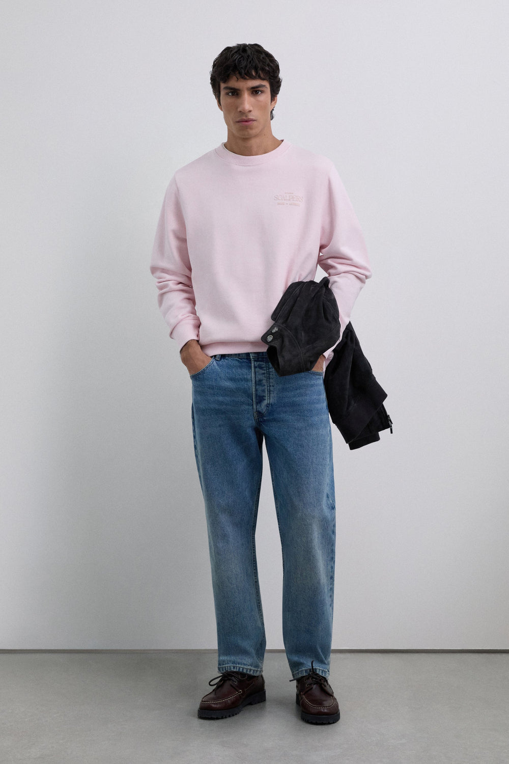 Sweatshirt confecionada em 100% algodão BCI. Decote redondo. Regular fit. Padrão atrás com logótipo. Acabamentos em nervuras.
