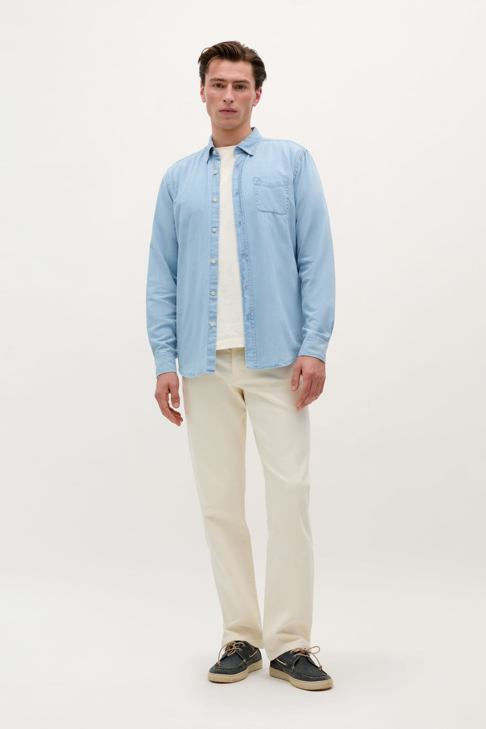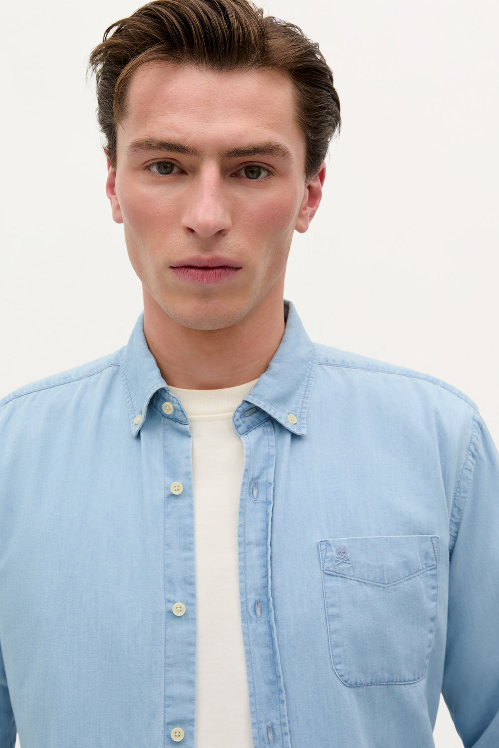 Camisa confecionada em 100% algodão orgânico. Fecho com abotoadura à frente. Manga comprida. Fecho ajustável nos punhos com botão. Bolso frontal. Monograma bordado no tom no bolso.