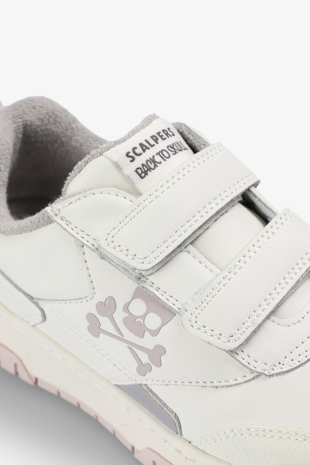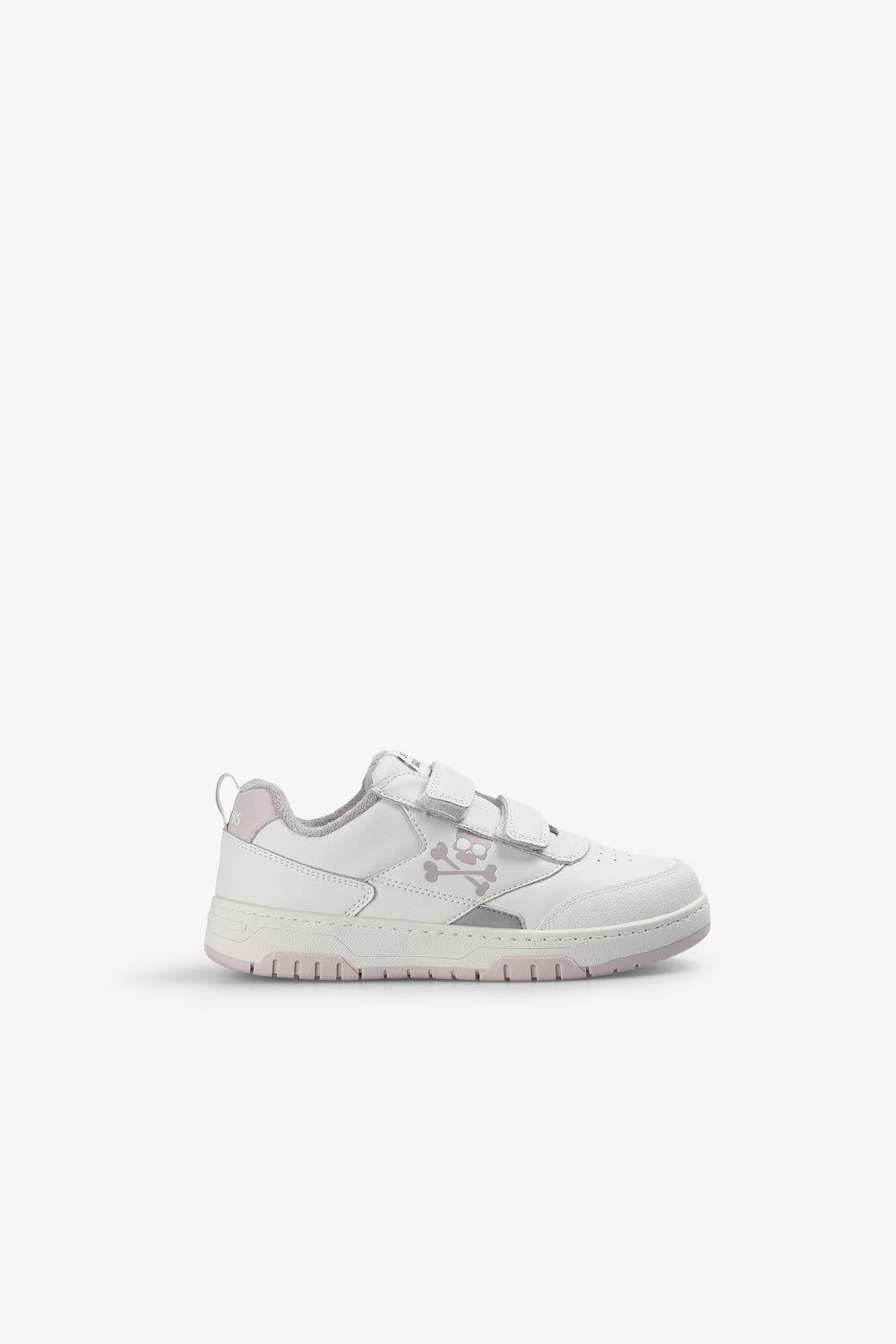 Sapatilhas com skull lateral em contraste confecionadas em pele. Fecho duplo de velcro. Sola de TPR. Pormenor de contraste no calcanhar com logótipo e pormenor de logótipo de etiqueta na língua.