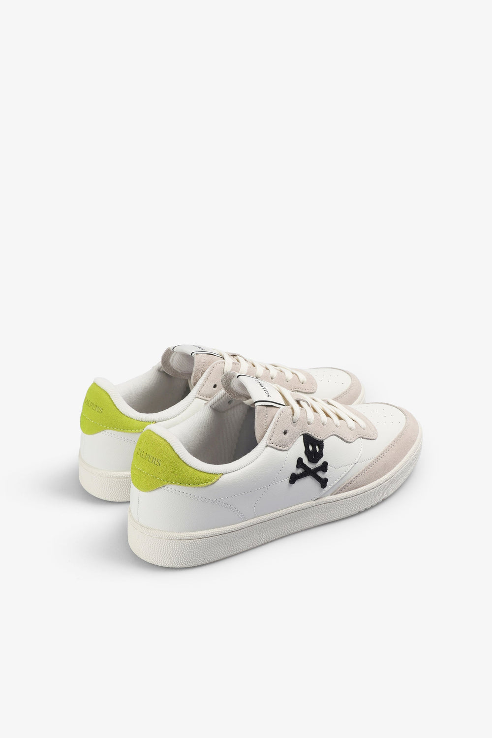 Sapatilhas com skull lateral em contraste confecionadas em pele. Fecho com cordões. Sola de TPR. Pormenor em contraste no calcanhar e pormenor de logótipo no tom. Etiqueta com logótipo na língua.